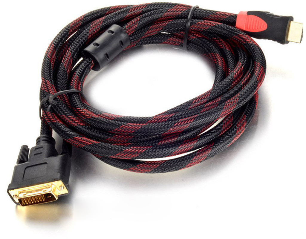 | Кабель HDMI (тато) -DVI (тато) 3,0м, 2 фериту, обплетення, круглий Black / RED, Пакет |