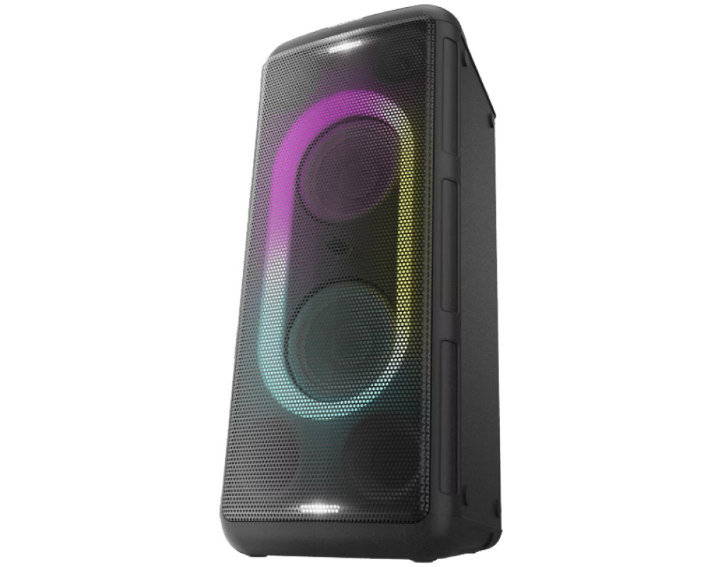 Масивний звук TMAX45 — це стильна потужна аудіосистема, розроблена для сучасного життя, яка забезпечує потужний якісний звук. Це приносить новий рівень захоплення зустрічам, як ніколи раніше, роблячи їх більш приємними та незабутніми. Виведіть свій звук на новий рівень Система оснащена 6,5-дюймовим подвійним низькочастотним динаміком, подвійним високочастотним динаміком і портами з фазоінвертором для яскравого звуку на всіх частотах. Насолоджуйтесь добре збалансованим звуком від глибоких басів до кришталево чистого вокалу з високими нотами за допомогою однієї установки. Час запалювати Сім кольорів підсвічування можна налаштувати відповідно до атмосфери на сцені. Вільно створюйте атмосферу, яка відповідає музиці вашому смаку. Крім того, він оснащений двома миготливими вогнями, які додають додатковий вимір вашій сцені. Чий список відтворення ваш улюблений? TMAX45 підтримує музичні джерела, зокрема Bluetooth® і USB. Вбудований Bluetooth® дозволяє легко під'єднати ваш смартфон або планшет до системи, щоб кожен міг разом насолоджуватися власними списками відтворення, якими вони пишаються. Концерти на вашому телевізорі Підключивши систему до телевізора за допомогою оптичного кабелю, ви зможете разом із друзями насолоджуватися живими виступами та музичним вмістом виконавців, великим шанувальником яких ви є, а також потужним звуком і динамічними зображеннями. Навіть фільми та спортивні ігри оживуть завдяки його величезній потужності звуку. Поділіться радістю створення музики! Під'єднайте свій мікрофон до мікрофонного гнізда та влаштовуйте вечори караоке з друзями або під'єднайте свою гітару до гнізда для гітари та використовуйте TMAX як гітарний підсилювач для чудових джем-сесій. Готові збільшити гучність? TMAX45 можна з’єднати кількома блоками* за допомогою дроту, що означає використання для ще більших вечірок. Насолоджуйтеся жвавою вечіркою з багатьма друзями з динамічним звуком. Крім того, функція режиму динаміка дозволяє налаштувати кожну систему на лівий або правий динамік для захоплюючого стереозвуку. *Можна під'єднати до двох додаткових пристроїв однієї моделі. Зручна ручка для перенесення У систему вбудована зручна ручка. Це дуже зручно для переміщення в сад або на балкон для вечірок, де збираються друзі та родина. Гнучка компоновка Завдяки TMAX45 у вас є можливість розмістити його як завгодно – горизонтально чи вертикально. Крім того, це більше, ніж просто система для вечірки. Він також ідеально підходить для відпрацювання ваших танцювальних рухів з друзями або тренувань під улюблені мелодії. Просте, інтуїтивно зрозуміле керування Кількість робочих кнопок було зведено до мінімуму, а розташування кнопок розроблено таким чином, щоб будь-хто міг керувати ними інтуїтивно. Основні операції, такі як відтворення медіа, під'єднання пристрою та регулювання гучності, можна легко виконувати без вагань. |