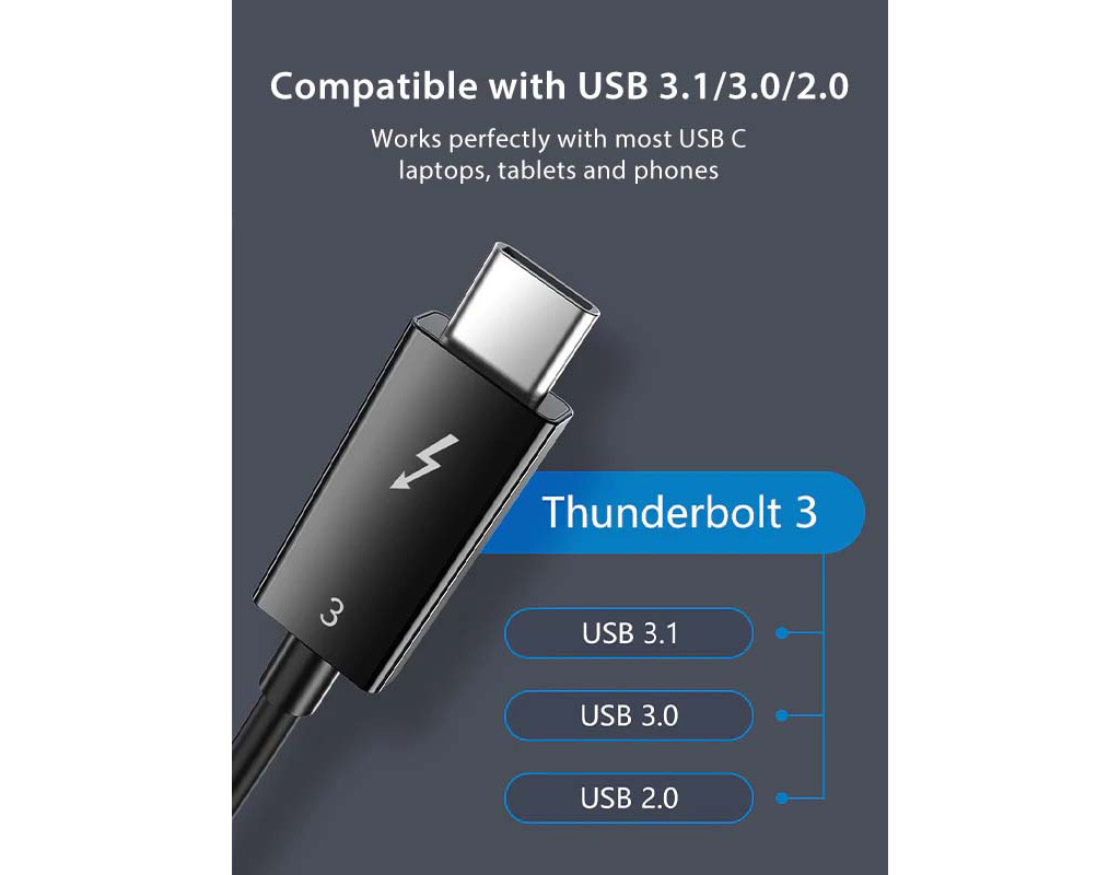 Дата кабель USB-C to USB-C 0.5m Thunderbolt 3 100W (20V/5A) 5K60Hz Cabletime (CA915392)