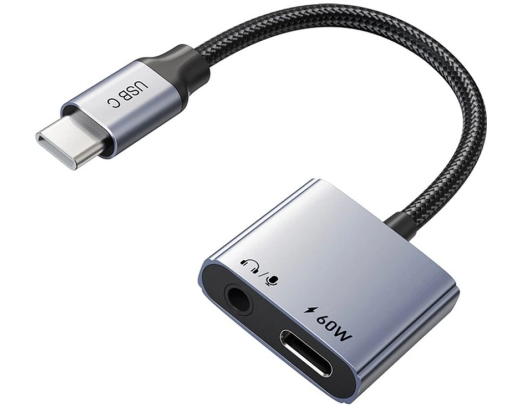 Перехідник USB-C M to 3.5mm F + USB-C F PD60W Cabletime (CA915750)