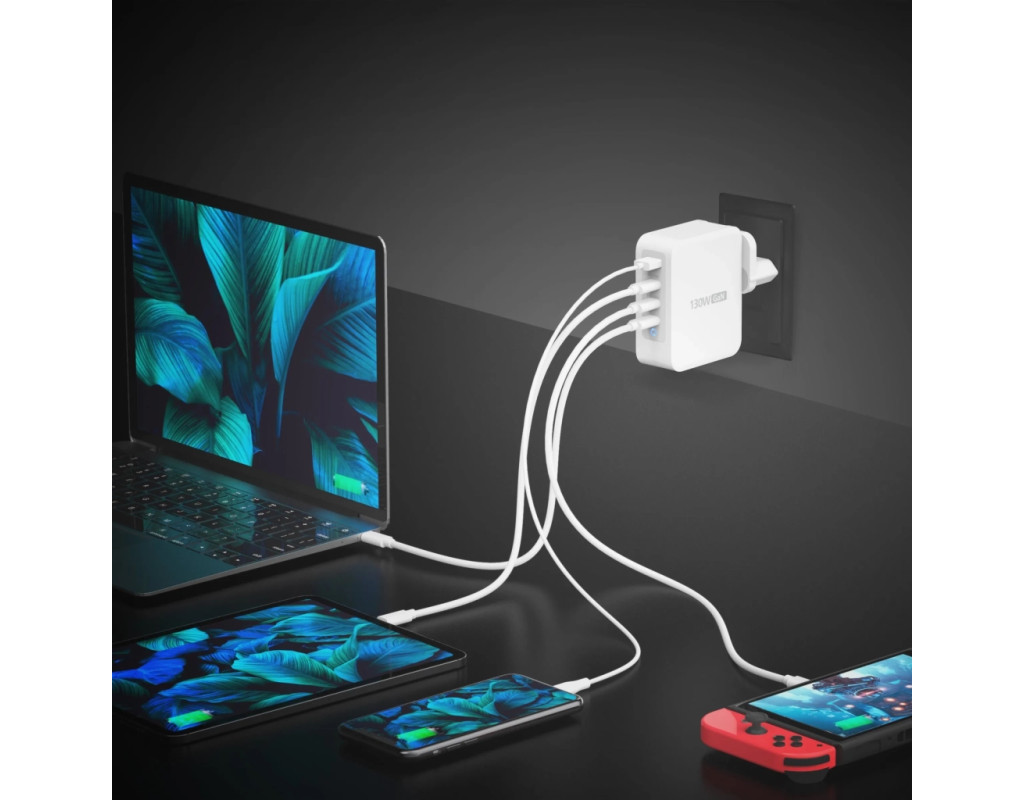 | Зарядний пристрій J5create 1xUSB + 3xUSB-C 130W GaN QC3.0/PD/PPS (JUP43130E-EN) — це потужне рішення для швидкої зарядки декількох пристроїв одночасно. Завдяки технології GaN, цей адаптер забезпечує величезну потужність у компактному, легкому корпусі. Він оснащений трьома USB-C портами та одним USB Type-A портом, що дозволяє заряджати до чотирьох пристроїв одночасно з максимальною вихідною потужністю до 130 Вт. Порти USB-C підтримують Power Delivery, забезпечуючи швидку зарядку для смартфонів, планшетів та ноутбуків. Технологія QC 3.0 у порту USB Type-A оптимізує зарядку для ваших гаджетів. Бірюзовий і сірий корпус пристрою не тільки елегантний, а й забезпечує надійність завдяки захисту від перенапруги, перегріву та перевантаження. Цей адаптер ідеально підходить для користувачів iPhone, MacBook Pro, а також планшетів і ноутбуків інших відомих брендів, таких як Dell, HP, і Lenovo. J5create — це ваш універсальний компаньйон для зарядки будь-де, на якого можна покластися завдяки розширеній сумісності та безпеці у використанні. |