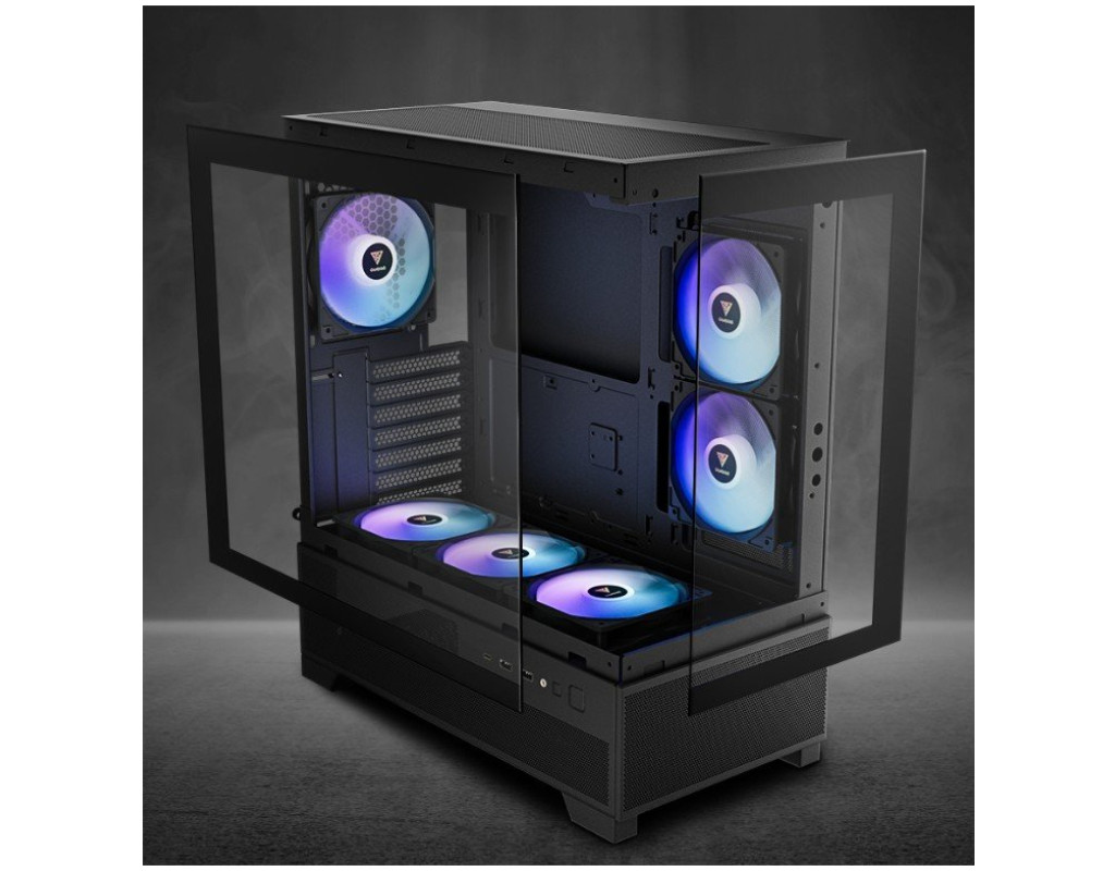 | Розкішний корпус для ПК Gamdias AURA GC12 ARGB (4711514503821) вражає витонченим дизайном та функціональністю, поєднуючи високі технології з естетично приємним виглядом. Будучи частиною нового покоління мультимедійних корпусів, AURA GC12 ARGB відповідає потребам користувачів, які шукають оптимальний баланс між продуктивністю та стилем. Продумана конструкція радіє вашому оку своєю панорамною передньою та бічними панелями з загартованого скла, що не лише додає елегантності, але й дає можливість спостерігати за внутрішньою роботою ПК та милуватися всім спектром ARGB підсвічування, встановленим на шести 120 мм вентиляторах. Ця особливість не тільки підкреслює красу, але й забезпечує відмінний повітряний потік, що гарантує оптимальне охолодження компонентів системи. Міцність та надійність корпусу підкреслюється використанням високоякісних матеріалів у поєднанні з практичністю. Серце вашої системи буде надійно захищене будовою Miditower, яка підтримує материнські плати типу ATX, Mini-ITX та Micro-ATX, надаючи гнучкість при виборі компонентів. Завдяки можливості встановлення довгих відеокарт до 410 мм, ви можете не турбуватися про обмеження щодо вибору потужних графічних рішень. Раціональна організація простору всередині корпусу дозволяє розмістити всі необхідні компоненти та аксесуари. Gamdias AURA GC12 ARGB має одне відділення для 3.5-дюймового жорсткого диска та два для 2.5-дюймових накопичувачів, що забезпечує достатню кількість місця для зберігання вашої інформації. Сім слотів для розширення дозволять вам адаптувати систему під свої потреби з легкістю. Крім того, для захисту від пилу передбачені пилові фільтри, що збільшують термін служби внутрішніх компонентів. Інноваційне охолодження є однією з ключових переваг AURA GC12 ARGB. Завдяки шести встановленим вентиляторам та додатковим місцям для двох зверху, ви можете бути впевнені в ефективному охолодженні під час найвимогливіших сесій. Підтримка рідинного охолодження на бічній частині корпусу дозволяє встановити радіатор розміром до 240 мм, забезпечуючи тиху та надійну роботу ПК навіть під високим навантаженням. Сучасні можливості підключення дозволяють без зусиль підключати периферійні пристрої завдяки переднім портам: 1 x USB Type C, 2 x USB 3.0 та 1 x аудіороз'єм. Така конфігурація полегшує доступ до часто використовуваних пристроїв без необхідності заглядати всередину корпусу. Без блоку живлення, але з можливістю його встановлення знизу, ця модель пропонує максимальну гнучкість при виборі джерела живлення. Вона підтримує максимальну довжину блоку живлення до 180 мм, що вдало доповнює загальну конструкцію та дозволяє розміщувати навіть найпотужніші системи. Отже, Gamdias AURA GC12 ARGB — це ідеальний вибір для ентузіастів, які хочуть підкреслити свою індивідуальність через персоналізовану Спектральну підсвітку та витончений дизайн. Достатня потужність, якісні матеріали та продумана кожна деталь цієї моделі — запорука того, що вона стане надійним партнером вашого комп'ютера на тривалий час. |