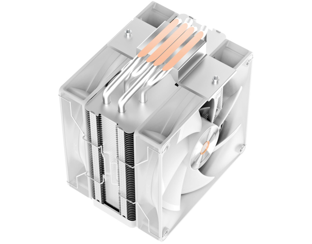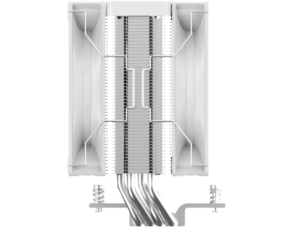 сокет - 1156, AM4, AM5, 1150, 1151, 1155, 1200, 1700, 1851, діаметр вентиляторів - 120 мм, 2000 об/хв, матеріал радіатора - алюміній, Тип підшипників - гідравлічний, роз'єми живлення - 4-pin, білий