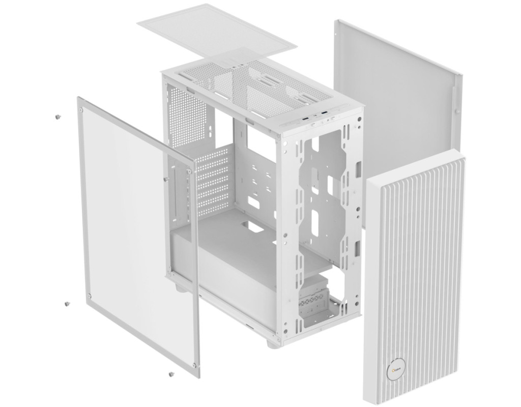 Біла естетика та візуальна чистота Світла гама корпусу додає простір і відчуття легкості. Плавні лінії та продумана геометрія підкреслюють сучасний стиль корпусу, роблячи його доречним як у професійних робочих середовищах, так і в ігрових кімнатах з яскравим підсвічуванням. Білий варіант формує акуратний, елегантний образ системи та акцентує увагу на її внутрішньому оснащенні.