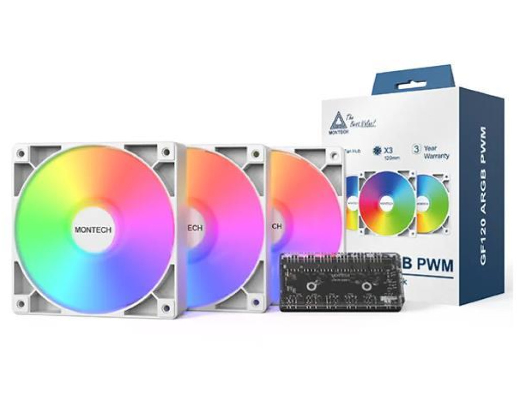 Набір із трьох вентиляторів для корпусу MONTECH 120MM GF120R V2 ARGB PWM 3I1 (W)