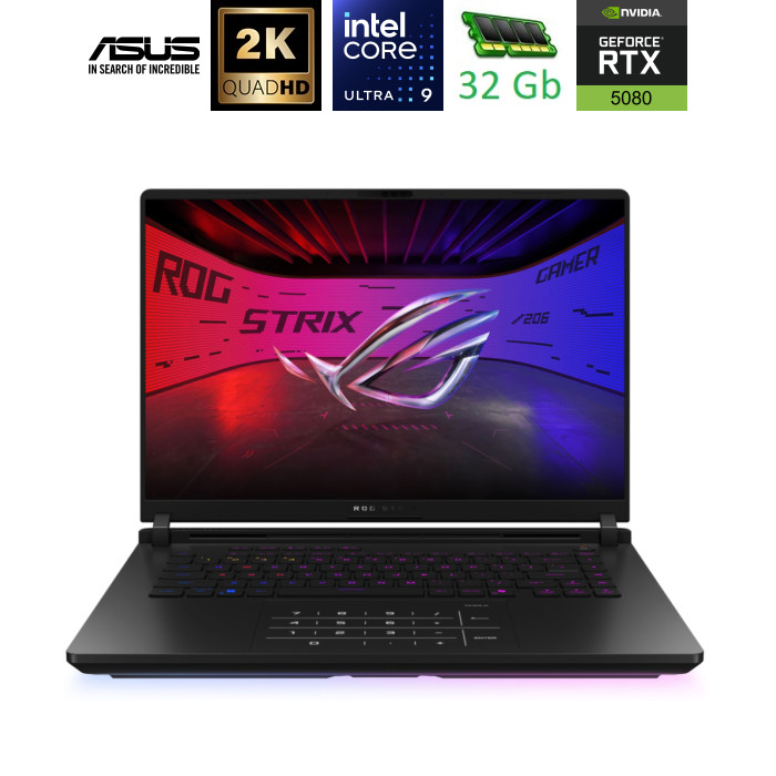 | Швидкість для перемоги Перемагай із процесором Intel Core наступного покоління, відеокартою NVIDIA GeForce RTX для ноутбуків наступного покоління з максимальним TGP 175 Вт. Найкращий із найкращих ROG Strix SCAR 16 2025-го модельного року пропонує найкращі можливості для ігор завдяки процесору Intel Core наступного покоління та відеокарті NVIDIA GeForce RTX для нового покоління з технологією Advanced Optimus. Цей потужний ноутбук може похвалитися оперативною пам’яттю DDR5 5600 МГц і SSD-накопичувачами PCIe 4.0. Потужність – на повну! Продуктивність вимагає потужності, тому «мотор» SCAR 16 розігнано до максимуму! У режимі Turbo максимальний TDP процесора складає 55 Вт для CPU, а TGP відеокарти – неймовірні 175 Вт. Для тих, хто бажає попрацювати в режимі Manual, є ще 10 Вт для процесора, а загальний ліміт потужності системи становить 240 Вт. Незалежно від того, які ігри ти любиш, чиста потужність Strix SCAR 16 дасть тобі перевагу над суперниками. Панівна сила Грай на найвищому рівні, спираючись на потужність процесора Intel Core наступного покоління. Завдяки восьми продуктивним і 16 енергоефективним ядрам цей новітній процесор забезпечує високу частоту кадрів у кіберспортивних та ААА-іграх. SCAR 18 також використовує апаратні засоби прискорення штучного інтелекту в окремих застосунках для створення контенту, що дає неймовірну гнучкість у використанні цього ігрового комп’ютера. Графіка нового покоління Для потужних ігрових машин потрібна потужна відеокарта, тому SCAR 16 оснащено відеокартою NVIDIA GeForce RTX для ноутбуків наступного покоління. Завдяки максимальному TGP 175 Вт з технологією Dynamic Boost, підтримці Advanced Optimus і доступу до новітніх інструментів прискорення ШІ, зокрема DLSS і Frame Generation, ця відеокарта здатна підняти якість гри на небачені раніше висоти. NVIDIA Advanced Optimus За допомогою технології NVIDIA Advanced Optimus ноутбук може автоматично вмикати мультиплексор MUX Switch, щоб передавати складені дискретною відеокартою кадри безпосередньо на дисплей, обходячи інтегроване графічне ядро. Такий спосіб передачі підвищує швидкодію на 5–10% порівняно з пристроями без MUX Switch, що забезпечує найкомфортніші відчуття від ігор – і не потребує від вас жодних дій для цього. Крім того, ця технологія заощаджує заряд акумулятора, оскільки може автоматично перемикатися з використання дискретної відеокарти, що споживає багато енергії, на більш економну вбудовану. Чи би ви не займалися, пристрій самостійно перейде в оптимальний режим роботи – вам не потрібно для цього нічого роботи. Ідеальний піт-стоп Для того, щоб зробити апгрейд нового Strix SCAR 16 простішим, ніж будь-коли, його дизайн було повністю перероблено. Нова конструкція корпусу не потребує інструментів для доступу до оперативної пам’яті, твердотільних накопичувачів і вентиляторів, а для слотів SSD використовується новітня система фіксації Q-latch. Подібно до механіка досвідченої бригади, що працює на піт-лейн, ти можеш за лічені секунди вилучити й замінити SSD та модулі оперативної пам'яті, і машина знову запрацює, не пропустивши жодного кола. Спеціальна рамка закриває решту материнської плати для захисту інших компонентів, але її можна легко зняти вилучивши декілька гвинтів, якщо потрібно виконати подальші роботи. Охолодження Strix SCAR 16 2025-го року отримав повністю оновлену систему охолодження, під час створення якої були виконані численні розрахунки, щоб гарантувати найкращі ігрові враження в