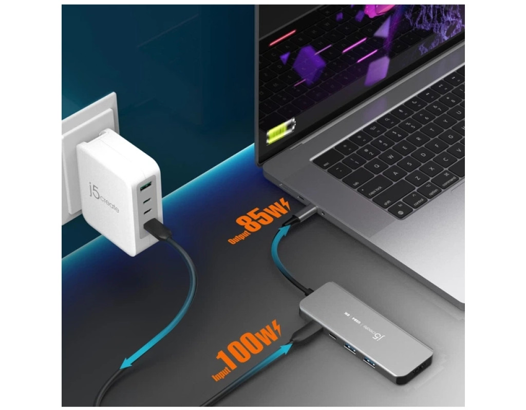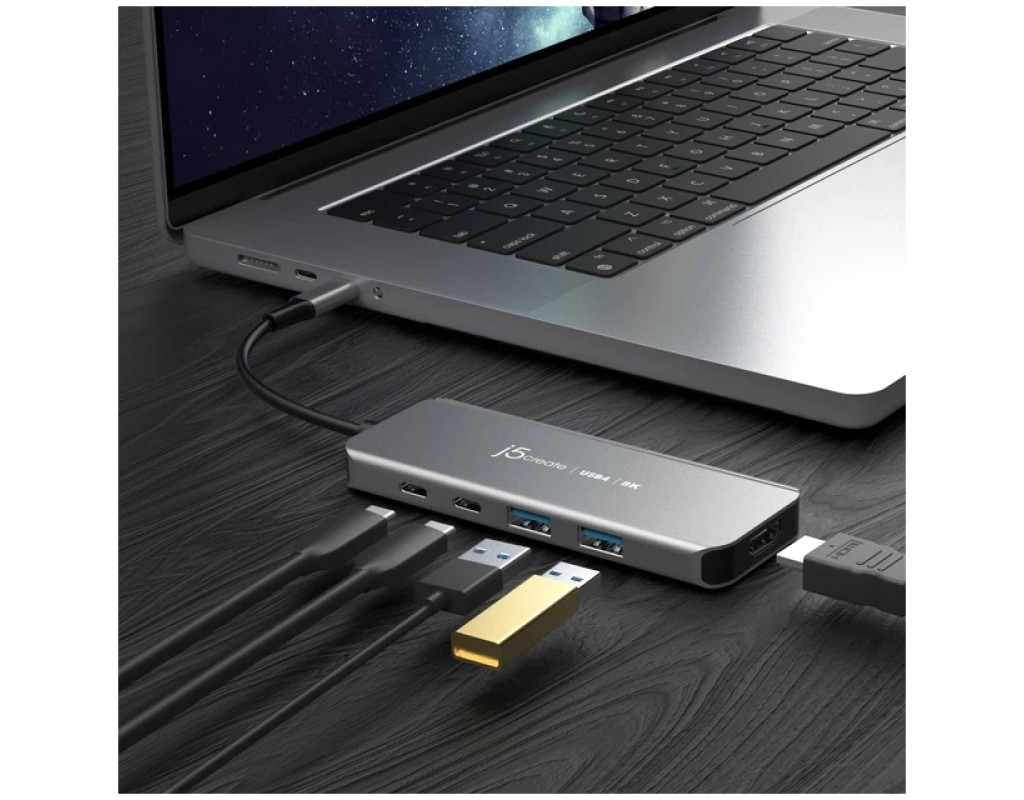 Багатопортовий хаб USB4 оснащений новітнім контролером USB4, сумісним із Thunderbolt 4 та старими специфікаціями USB. Завдяки пропускній здатності до 40 Гбіт/с, динамічним даним та розподілу пропускної здатності дисплея для ефективного потоку даних дисплея ви можете легко створити конфігурацію монітора високої роздільної здатності. Насолоджуйтесь роздільною здатністю до 8K і швидшим доступом до даних без впливу на продуктивність системи. Крім того, він має чотири порти USB SuperSpeed+ 10 Гбіт/с (2 USB-C і 2 Type-A) для заряджання, підключення периферійних пристроїв і високошвидкісних пристроїв зберігання даних. Він також оснащений портом USB-C Power Delivery для заряджання ноутбука та підключених пристроїв із пропускною здатністю до 100 Вт.