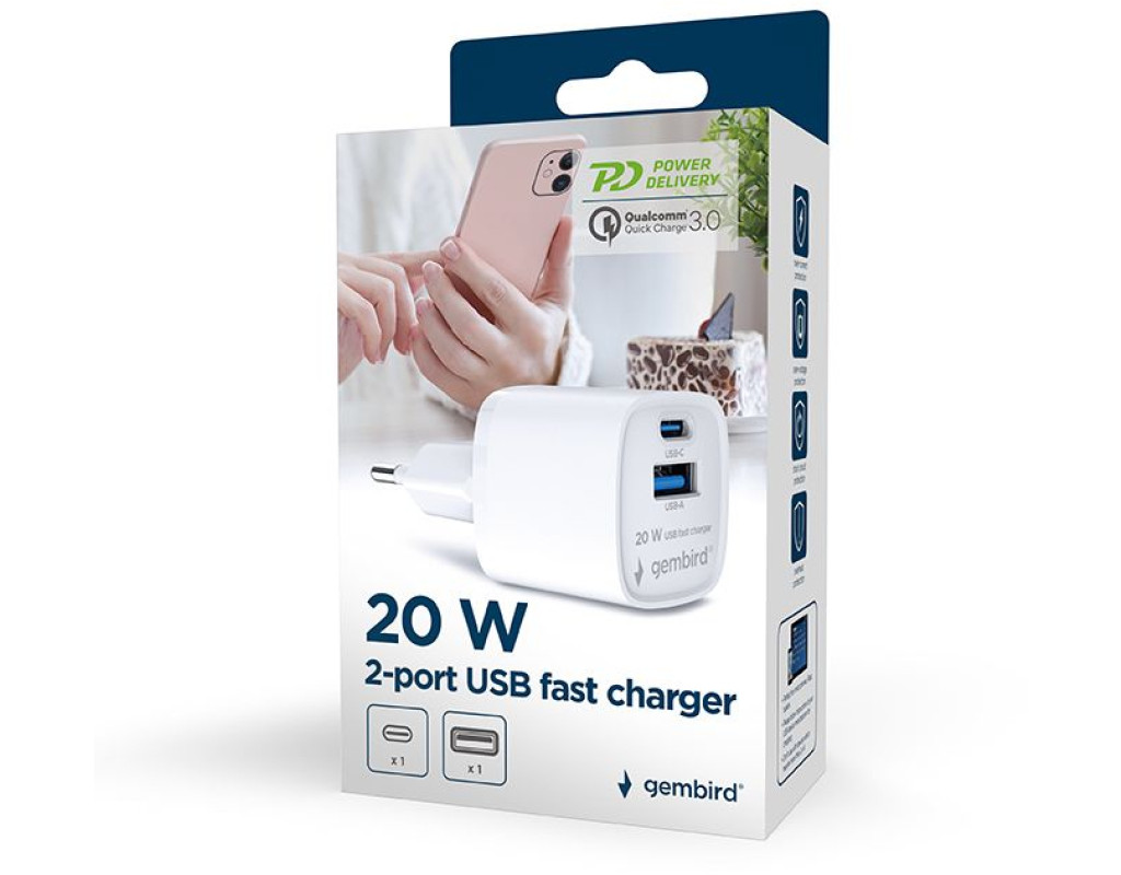 | Зарядний пристрій Gembird 1xUSB-C PD20W + 1xUSB QC3.0 white (TA-UC-PDQC20-W-01) — це ідеальний вибір для тих, хто цінує швидкість, надійність та ефективність під час заряджання своїх улюблених пристроїв. Завдяки підтримці технологій Quick Charge 3.0 та Power Delivery (PD) цей адаптер забезпечує блискавичне заряджання вашого смартфона, планшета, ноутбука, TWS навушників або навіть геймпада. Завдяки виходу USB-C, що підтримує потужність до 20 Вт, та USB-A з максимальною потужністю 18 Вт, ви з легкістю можете використовувати цей пристрій для одночасного заряджання кількох гаджетів. Його інтелектуальна система захисту убезпечить ваші пристрої від перевантаження, перенапруги, короткого замикання та перегріву, надаючи вам гарантію безпеки та довговічності. Вхідна напруга адаптера підтримує широкий діапазон (100-240 В), що робить його ідеальним для подорожей, оскільки ви можете використовувати його практично в будь-якій країні світу. До того ж, його компактний та елегантний білий дизайн гармонійно доповнює інтер'єр будь-якої сучасної оселі або офісу. Для найкращих результатів переконайтеся, що ваші пристрої підтримують функцію швидкого заряджання. Зарядний пристрій Gembird — це символ інноваційних технологій, що відповідають вашому активному життєвому стилю. Оберіть Gembird для максимальної зручності та продуктивності щодня. |