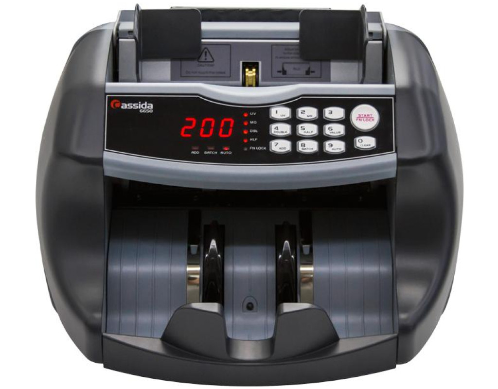 Широкі можливості підрахунку Лічильник валюти Cassida 6650 UV являє собою сучасний рахунковий апарат з широким функціоналом. Зручне виконання контрольної панелі дає можливість легко активувати і деактивувати всі передбачені програмної складової апарату функції, серед яких детекція банкнот на здвоєння, а також цілісність. Також машинка оснащена двома режимами фасування, а швидкість обробки купюр досягає 1000 штук в хвилину. При обробці старих купюр складнощів не виникає.