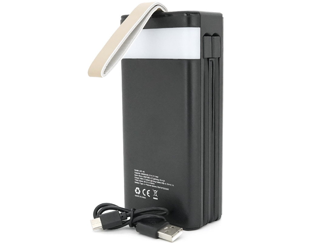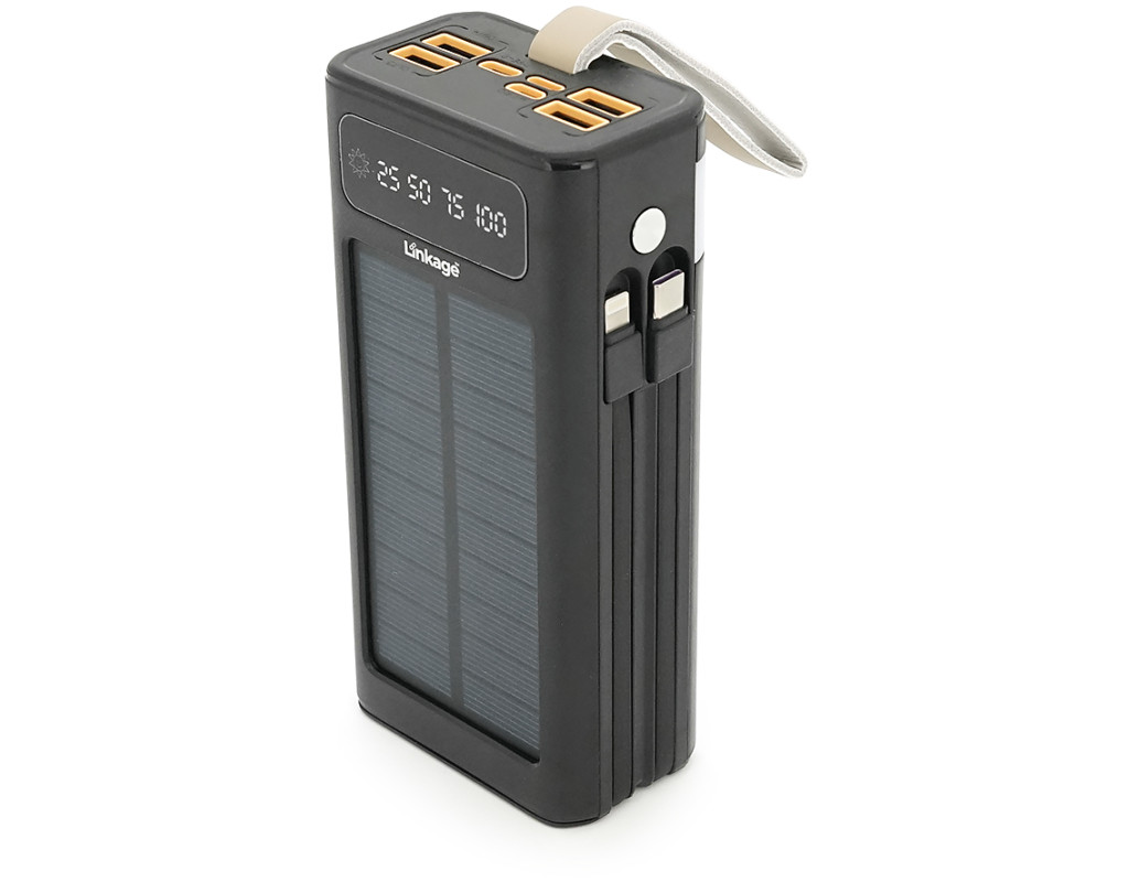 Power bank Linkage LKP-46, Solar 30000mAh, 22.5W, Кабелi Туре-С+Lighting, 0.70 kg, Black, Box