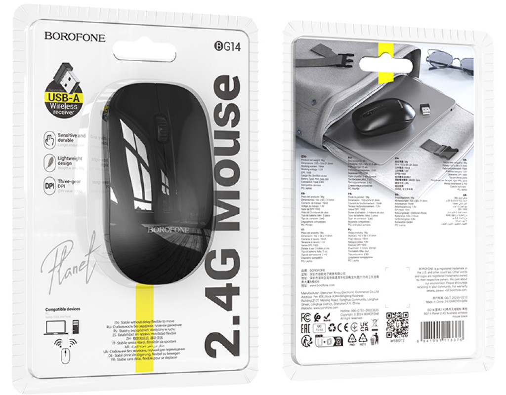 Миша бездротова BOROFONE BG14, 1600DPI, Black, 2.4GHZ, Box