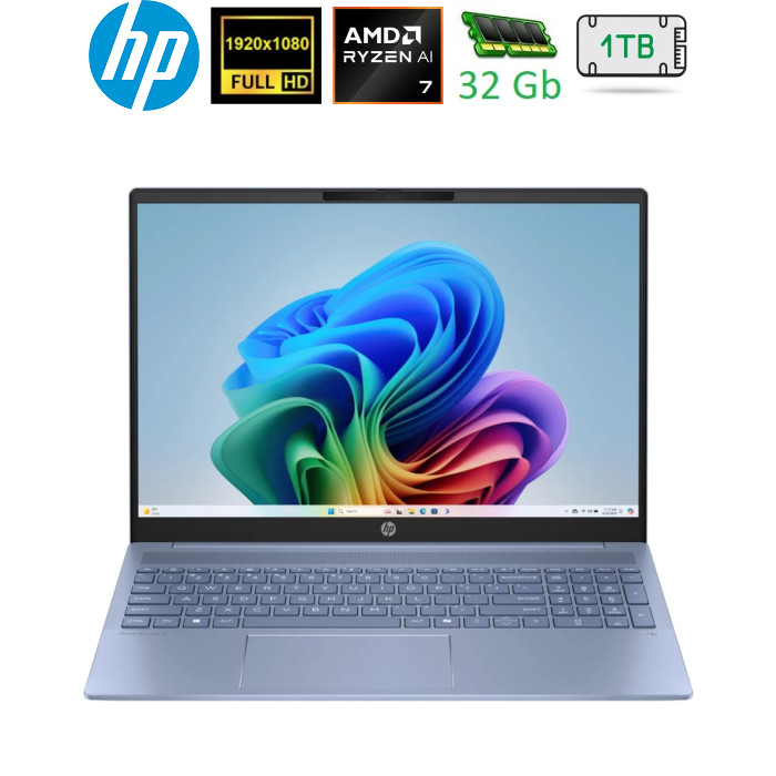 16", 1920x1200 (WUXGA), IPS, AMD Ryzen AI 7 350 (2.0 - 5.0 ГГц), 32 ГБ, SSD - 1 ТБ, AMD Radeon Graphics, Windows 11 Home, 59 Втг, підсвічування клавіатури, українська клавіатура, 1.79 кг, синій