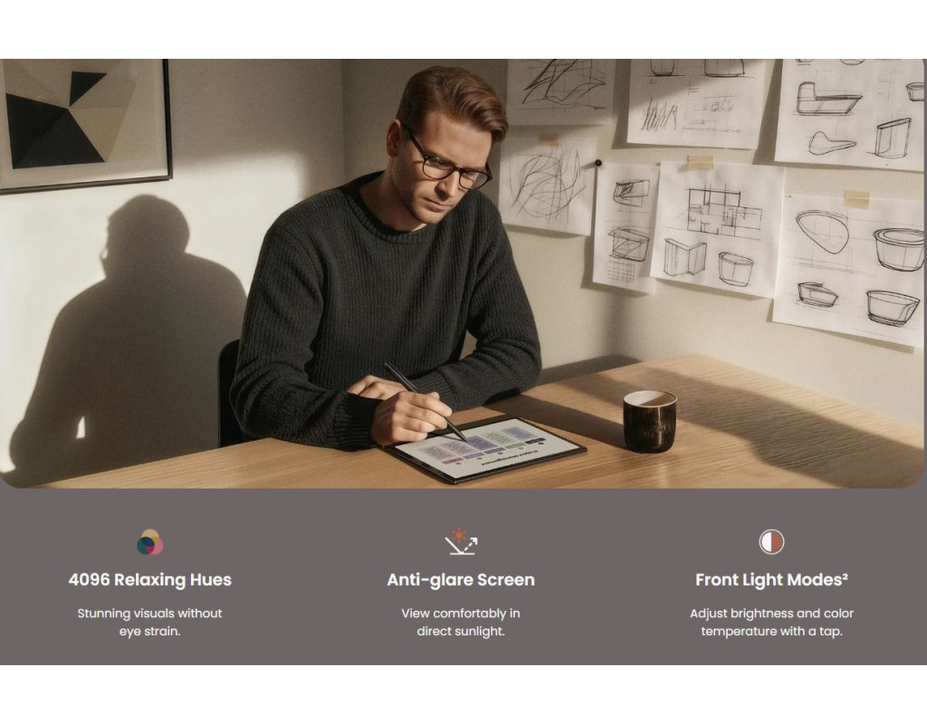 | 10,3-дюймова електронна книга BOOX Note Air 5 C забезпечує неймовірно реалістичні кольори та чіткі деталі, при цьому не напружуючи очі. Малюйте пейзажі, переглядайте звіти та працюйте на яскравому, адаптивному та схожому на друкований текст барвистому полотні.