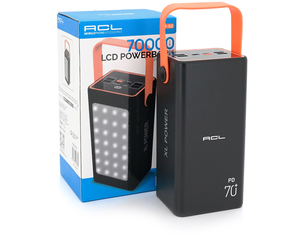 | Powerbank ACL PW-52 70000mAh, PD22.5W, 4xUSB+ Type C, ліхтар, 1,47 кг, Black / White, Box |