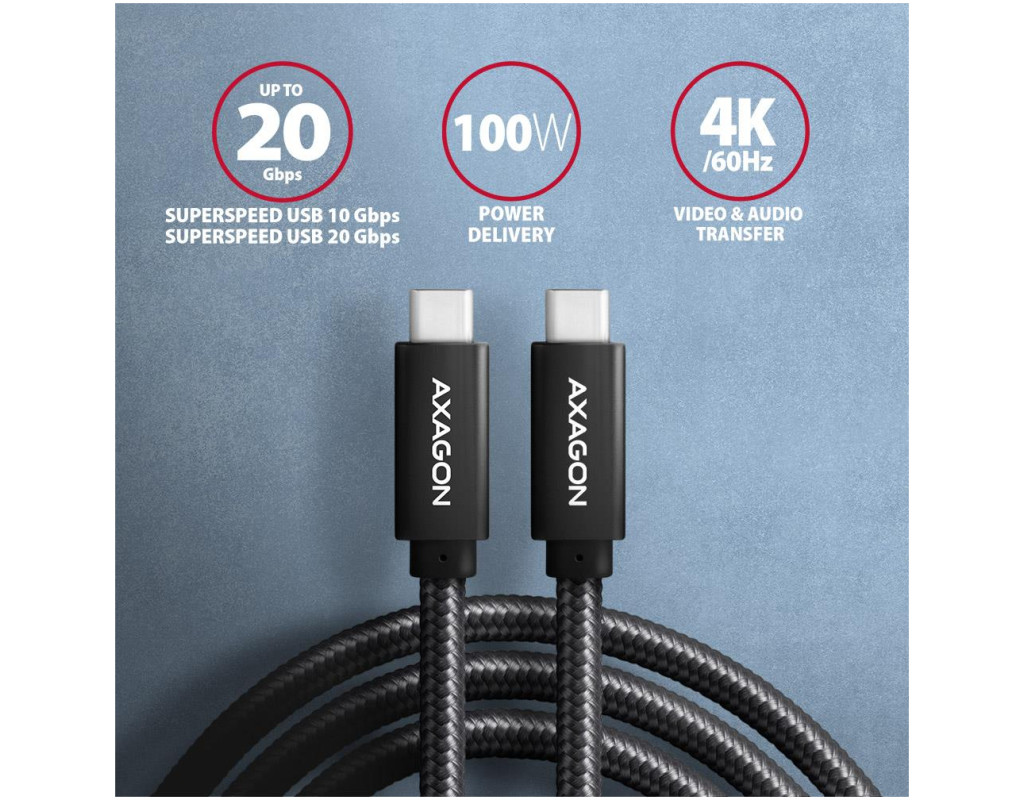 Швидкість, потужність і надійність у подвійному розмірі AXAGON BUCM32-CM20AB — це високошвидкісний кабель USB-C ↔ USB-C довжиною 2 метри, який поєднує блискавичну передачу даних до 20 Гбіт/с, потужне заряджання до 100 Вт і підтримку 4K відео. Його створено для користувачів, які очікують максимальної ефективності від одного з’єднання — чи то під час заряджання ноутбука, чи при передачі мультимедійних файлів між професійними пристроями.