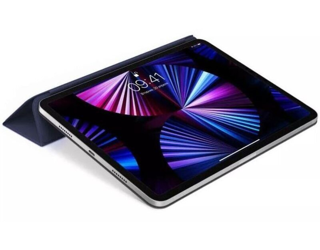 | Легка і міцна обкладинка Smart Folio захищає екран вашого iPad Pro, не закриваючи задню алюмінієву поверхню пристрою. Таким чином iPad Pro як і раніше залишається тонким і витонченим, але отримує додатковий захист. Обкладинка Smart Folio виготовляється з поліуретану. А завдяки підібраній в колір підкладці з мікрофібри дисплей залишається чистим. Завдяки магнітному кріпленню Smart Folio приєднується до корпусу iPad Pro відразу в потрібному положенні, а магніти всередині самої обкладинки забезпечують щільний контакт з пристроєм. Обкладинку Smart Folio можна використовувати в якості підставки при наборі тексту на iPad Pro. Для цього поверніть обкладинку, розташуйте її зі зворотного боку дисплея, і ви зможете працювати з iPad Pro під зручним кутом. Варто тільки відкрити обкладинку, як ваш iPad Pro автоматично вийде з режиму сну і буде готовий до роботи. Закрийте Smart Folio, і пристрій повернеться в режим сну. У конструкції обкладинки вже передбачені згини, тому Smart Folio можна легко перетворити в зручну підставку для спілкування по FaceTime або для перегляду фільмів. |