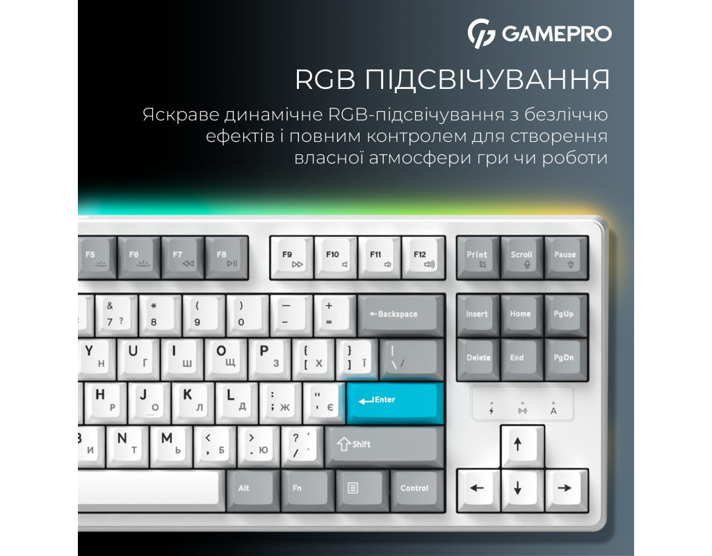 | GamePro Asgard Ragnar — сучасна бездротова механічна клавіатура, створена для поєднання компактності, преміальних матеріалів та комфортного друку в будь-яких умовах. Її продуманий 87% форм-фактор забезпечує оптимальний баланс між функціональністю та економією простору.
