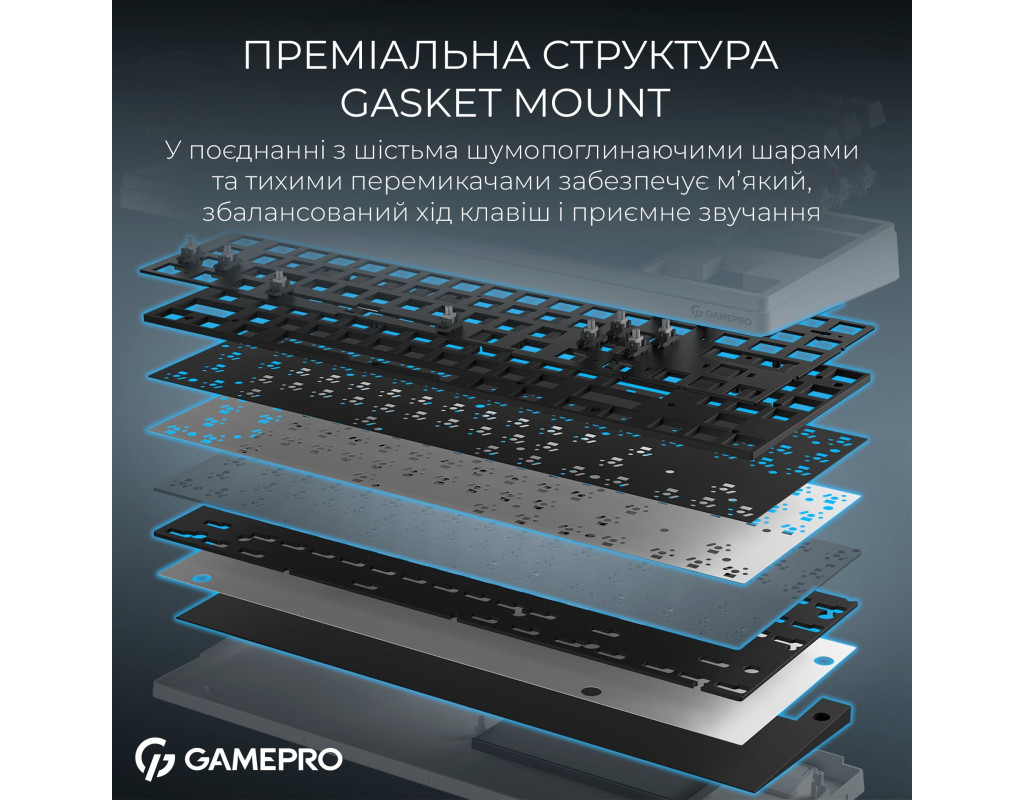 Змащені лінійні Keychron Super Switch Red, відомі своїм плавним, рівномірним ходом і дуже тихою роботою. Це “silent” перемикачі, які забезпечують мінімальний шум без втрати чіткості спрацювання. Ragnar має gasket-mount конструкцію з шістьма шарами шумопоглинання. Така будова дає клавіатурі м’яку пружність під час друку та забезпечує глухий, приємний акустичний профіль. Шумоізоляційні матеріали згладжують вібрації корпусу та пом’якшують звук кожного натискання, створюючи комфортну, збалансовану звукову картину. Клавіатура підтримує дротовий режим (USB-C), Bluetooth 5.2 та 2.4 ГГц через ресивер, а ємна батарея на 4000 мАг гарантує тривалу автономність без підзарядок. Модель оснащена регульованим RGB з великою кількістю ефектів, що дозволяє створити власну атмосферу під час роботи або ігор. PBT кейкапи профілю Cherry, стійкі до стирання та з приємною матовою текстурою, забезпечують довговічність та комфорт під час друку. Завдяки hot-swap сокетам можна легко замінювати перемикачі. GamePro Asgard Ragnar — це збалансована, тиха, технологічна та стильна клавіатура, яка поєднує сучасний комфорт, якісні матеріали та продуману конструкцію. |
