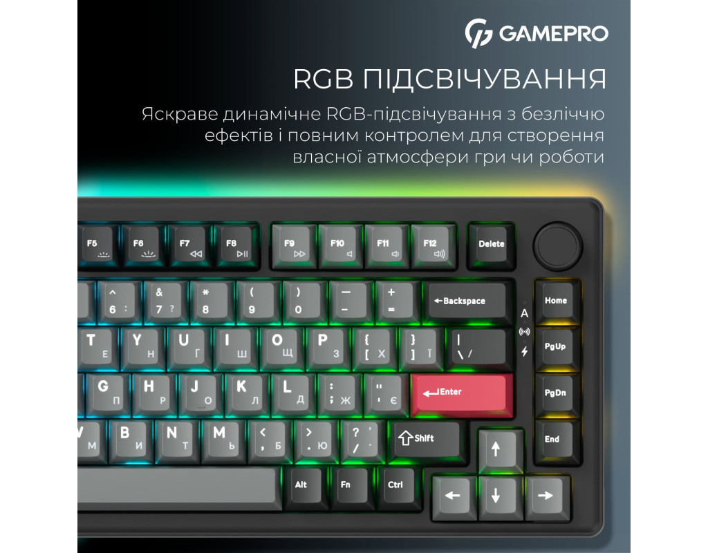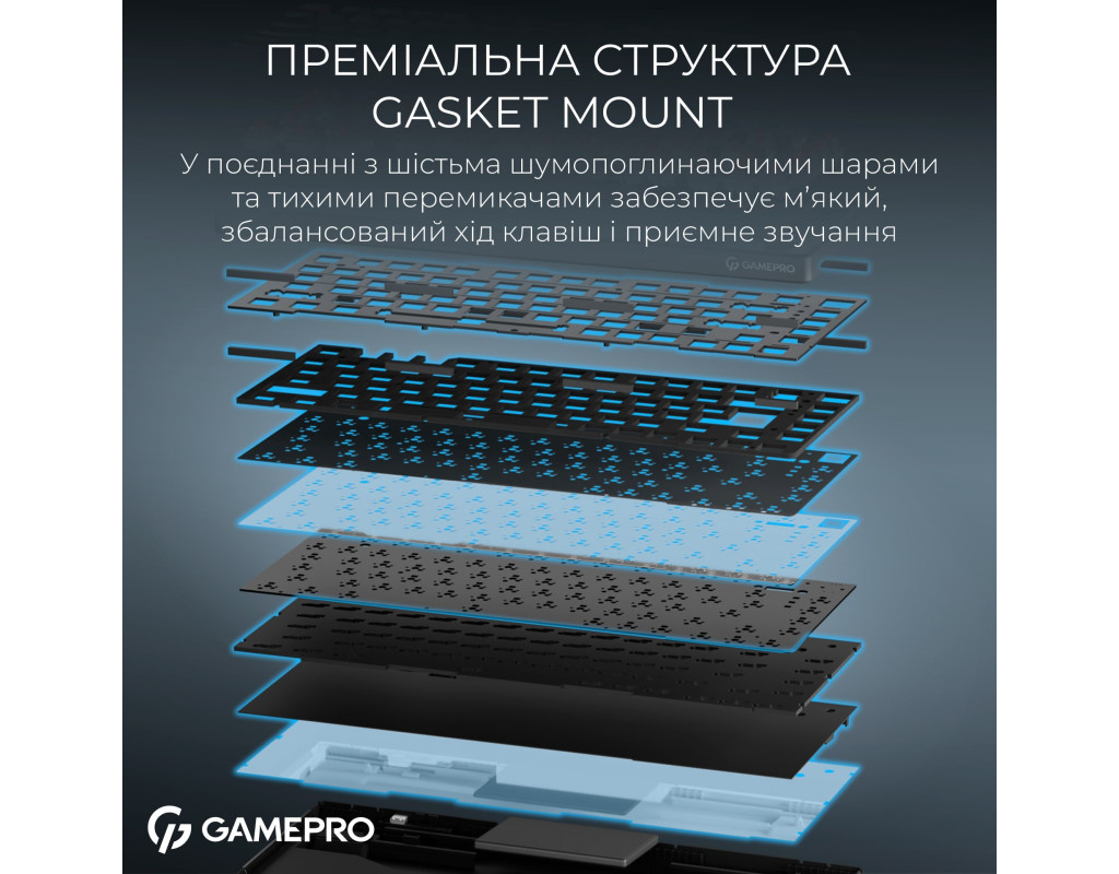 | GamePro Asgard Yord — сучасна бездротова механічна клавіатура, створена для поєднання компактності, преміальних матеріалів та комфортного друку в будь-яких умовах. Її продуманий 75% форм-фактор забезпечує оптимальний баланс між функціональністю та економією простору.