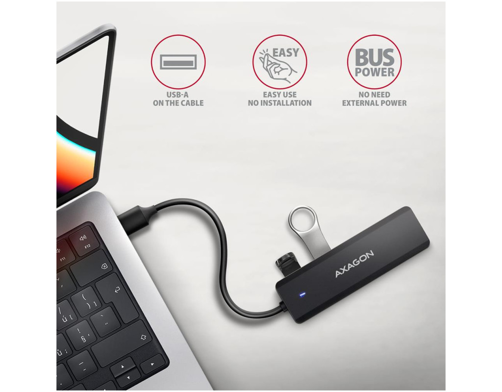 Компактний USB-хаб для подорожей і мобільної роботи AXAGON HUE-C1A — це універсальний 4-портовий USB-хаб із підтримкою швидкості передачі даних до 5 Гбіт/с, створений для тих, хто цінує мобільність і ефективність. Його компактний корпус, вбудований кабель та додатковий порт живлення USB-C роблять пристрій ідеальним супутником для ноутбуків, планшетів і смартфонів, забезпечуючи швидке підключення кількох пристроїв одночасно навіть у дорозі.