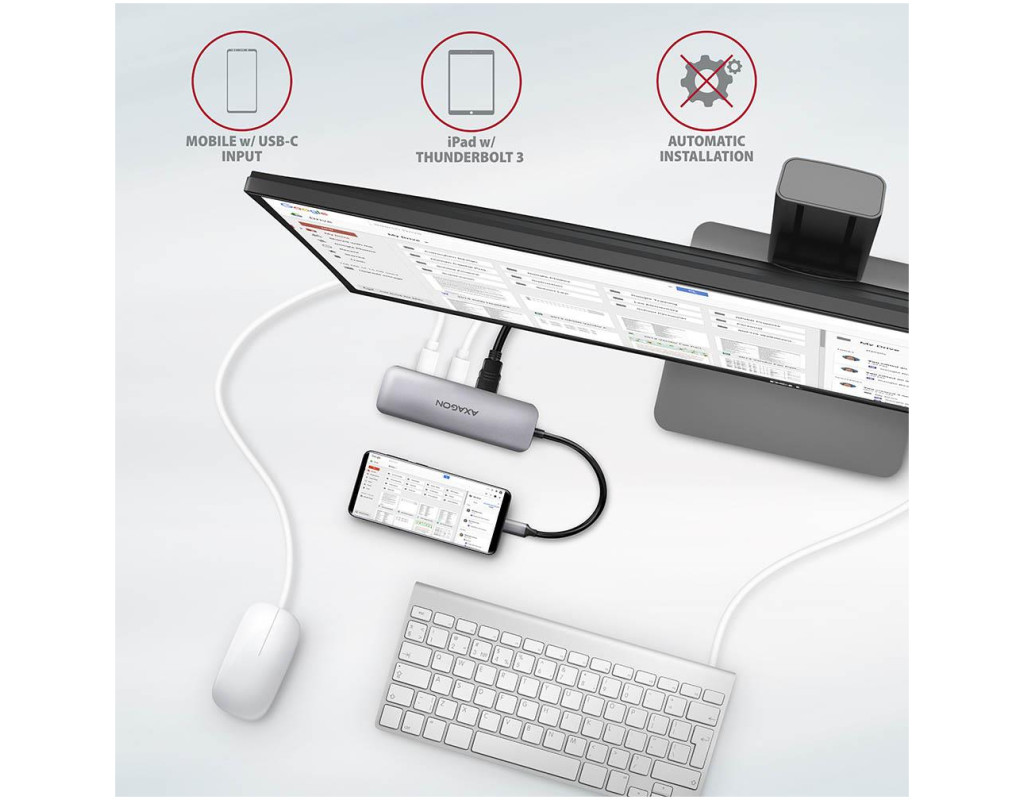 Простота використання та сумісність AXAGON HMC-5 підтримує Plug and Play і Hot Plug, що дає змогу швидко підключати пристрій без встановлення драйверів. Концентратор сумісний з усіма популярними операційними системами — Windows, macOS, Linux, Android і Chrome OS. Його можна використовувати не лише з ноутбуками, а й зі смартфонами з USB-C, підключаючи до них мишу, клавіатуру, флешку або навіть телевізор.