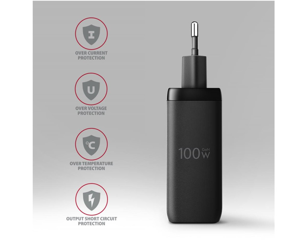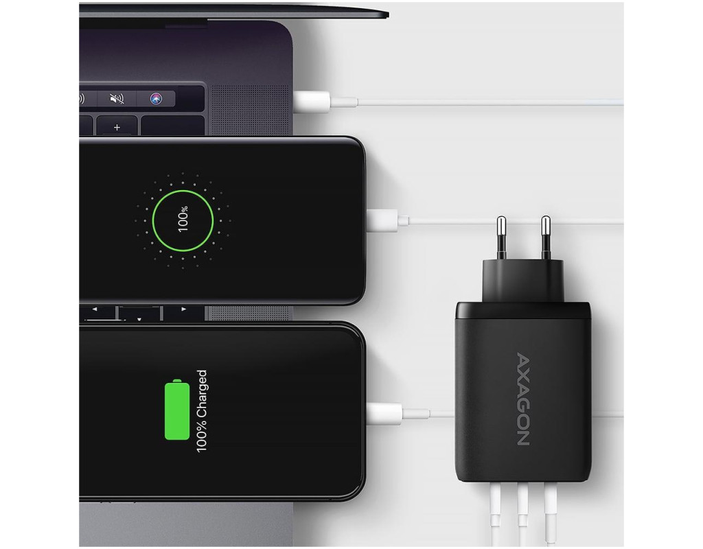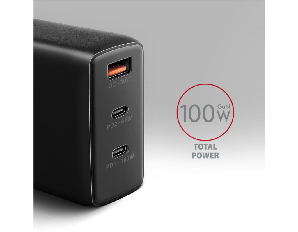 | Зарядний пристрій AXAGON 1xUSB + 2xUSB-C 100W QC4+ PD3.0 PPS black (ACU-DPQ100) є втіленням передової технології та потужності в стилі компактного дизайну. Оснащений трьома вихідними портами (два USB-C та один USB-A), цей пристрій забезпечує неймовірну універсальність для швидкого та ефективного заряджання різноманітних пристроїв — від ноутбуків до смартфонів та планшетів. Основою пристрою є новітня GaN-технологія, що дозволяє досягти високого рівня енергоефективності, зменшеного тепловиділення та збереження компактних розмірів. Завдяки цьому AXAGON ACU-DPQ100 відрізняється надійністю та довговічністю. Пристрій підтримує протоколи швидкої зарядки Power Delivery 3.0, Quick Charge 4.0 та Programmable Power Supply (PPS), що робить його чудовим вибором для сучасних гаджетів. Інтелектуальна система розподілу потужності автоматично адаптується до потреб підключених девайсів, забезпечуючи оптимальну швидкість заряджання та захищає їх від перегріву і перевантаження. Ця система включає багаторівневий захист, що робить зарядку безпечною та надійною. Завдяки компактності та портативності, зарядний пристрій з легкістю поміститься у вашій сумці, що робить його ідеальним спорядженням для подорожей. Стильний чорний дизайн із матовим покриттям додає естетичної привабливості та стійкості до подряпин. AXAGON ACU-DPQ100 — це ваш незамінний помічник для забезпечення енергією ваших пристроїв в будь-яких умовах — вдома, в офісі чи під час подорожей. |