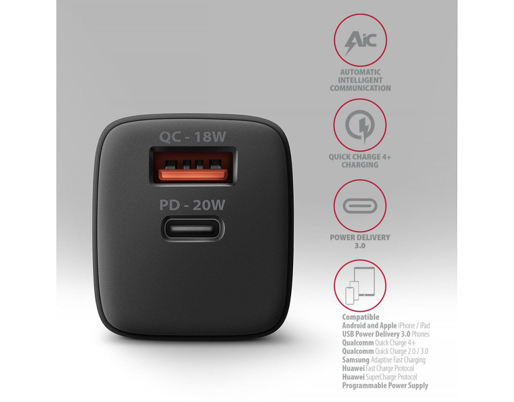 | Зарядний пристрій AXAGON 1xUSB QC3.0 + 1xUSB-C PD20W black (ACU-PQ20) — це поєднання компактності та сучасних технологій. Цей адаптер живиться від мережі і призначений для різноманітних пристроїв, таких як смартфони, планшети, екшн-камери, смарт годинники, геймпади, TWS навушники та фітнес-браслети. Виготовлений у стильному чорному корпусі, він відмінно доповнює будь-який інтер'єр. Швидка зарядка з підтримкою стандартів Quick Charge 4.0, Power Delivery 3.0 та Programmable PowerSupply (PPS) дозволяє ефективно заряджати пристрої, оптимізуючи час до мінімуму. З двома портами — USB-C та USB-A — ви зможете заряджати кілька девайсів одночасно. Максимальна вихідна потужність становить 20 Вт, що забезпечує швидке заряджання сучасних гаджетів. Інтелектуальна система розподілу потужності автоматично налаштовує параметри вихідного струму під підключені пристрої, забезпечуючи ефективне заряджання без перегріву. Якщо підключено два пристрої, контролер оптимізує розподіл енергії, зберігаючи стабільність і безпеку роботи. Забезпечуючи багаторівневий захист, адаптер має системи захисту від перенапруги, перевантаження струмом, перегріву та короткого замикання. Це гарантує безпеку для вашого обладнання, навіть при тривалому використанні. Елегантний дизайн і компактність (84 × 36 × 32 мм, 55 г) роблять цей зарядний пристрій ідеальним для подорожей чи офісу. Його зручно брати із собою завдяки невеликим габаритам. Сумісність з напругою у діапазоні 100–240 В AC дозволяє використовувати пристрій у будь-якому куточку світу. Вам більше не потрібно турбуватися про різні адаптери — всі рішення в одному пристрої. AXAGON ACU-PQ20W — це якість, безпека та ефективність в одному, незамінний супутник для тих, хто цінує надійність та сучасні технології в кожній деталі. |