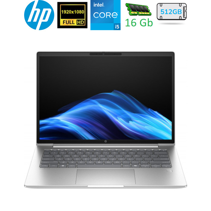 14", 1920x1200 (WUXGA), IPS, Intel Core i5-1334U (3.4 - 4.6 ГГц), 16 ГБ, SSD - 512 ГБ, Intel Graphics, DOS, 56 Втг, підсвічування клавіатури, сканер відбитків пальців, українська клавіатура, 1.39 кг, сріблястий