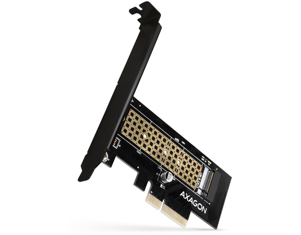 The AXAGON PCEM2-N internal adapter allows connecting an M.2 SSD disk to a desktop computer using a PCI-Express bus.