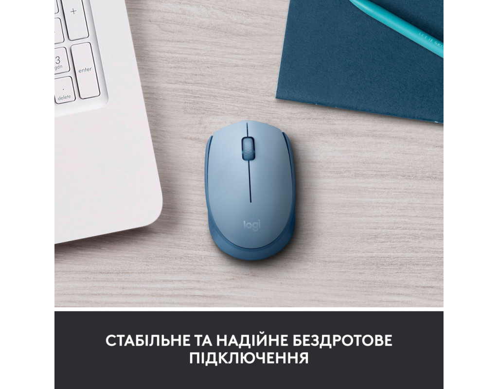 Бездротова миша Logitech M171 поєднує в собі зручність бездротового під'єднання й надійність дротового з'єднання. Завдяки використанню вдосконаленої бездротової технології зв'язку на частоті 2.4 ГГц від Logitech діапазон її дії становить 10 метрів. Ця доступна за ціною миша може працювати до 12 місяців від однієї батареї типу AA. Налаштувати її дуже легко — просто вставте мініатюрний бездротовий приймач в USB-слот. Миша M171 не потребує з'єднання й встановлення програмного забезпечення. Сумісна з операційними системами Windows, Mac і Chrome. Час роботи батареї USB-приймач, який не потребує від'єднання після завершення роботи |