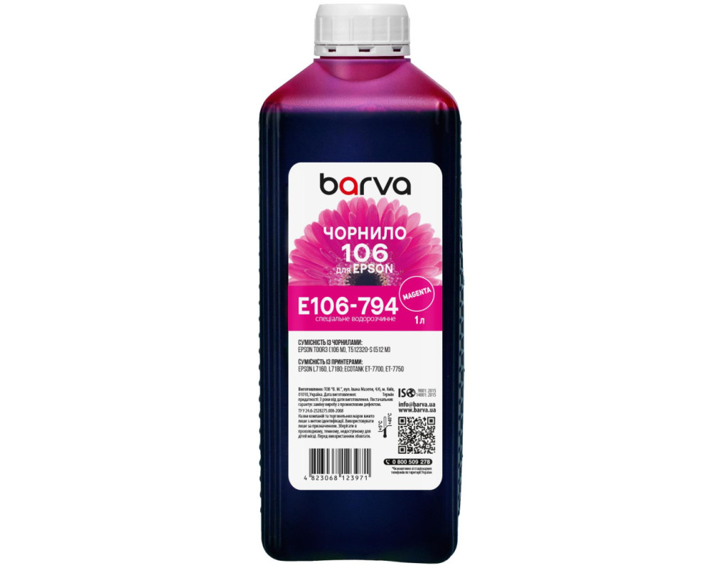 Чорнило Barva Epson 106 1л, Magenta (E106-794)