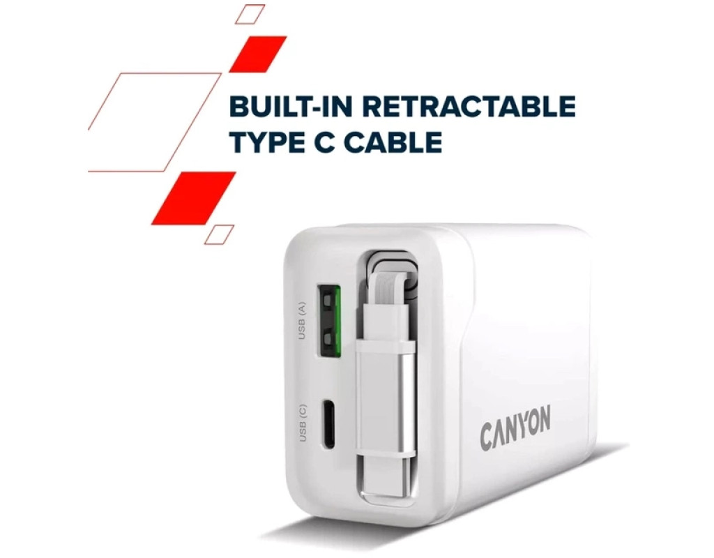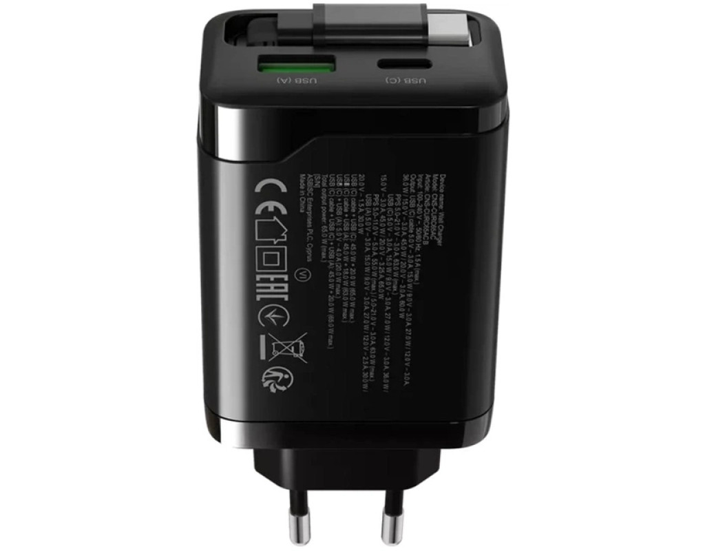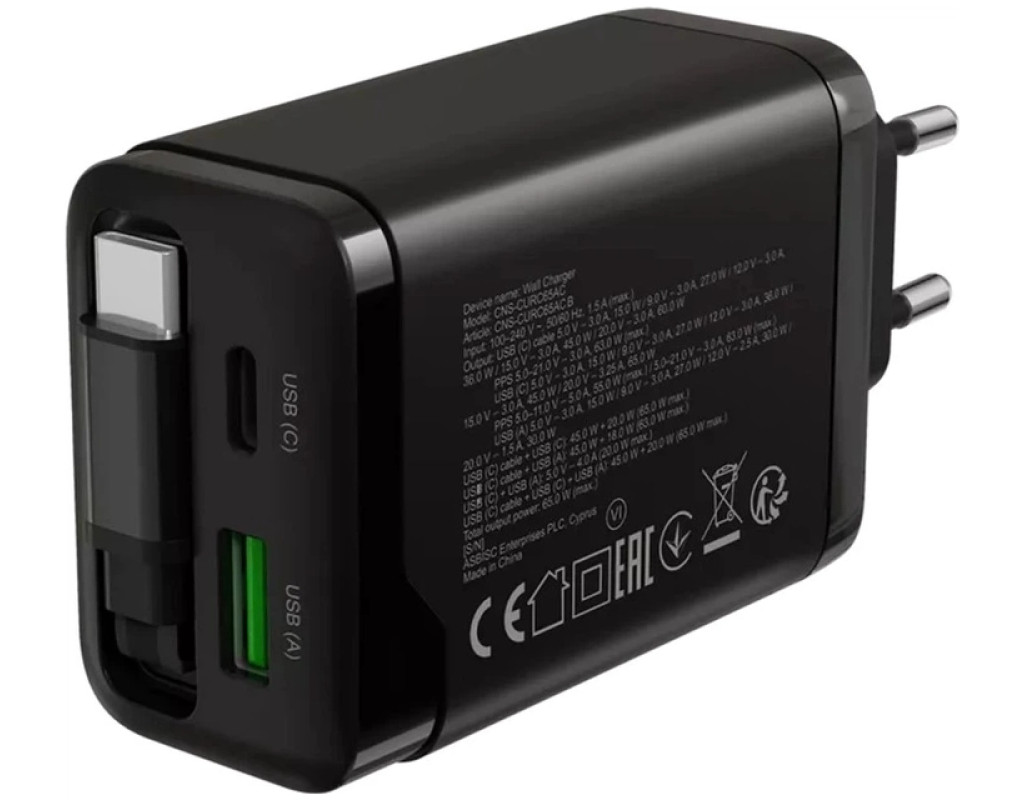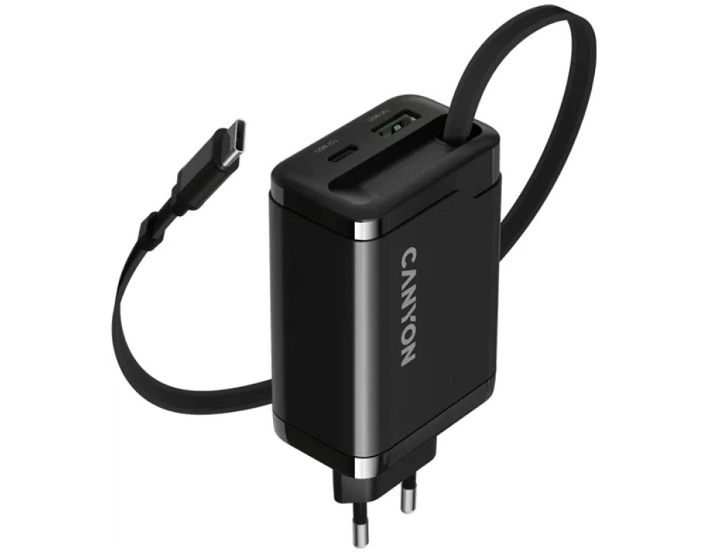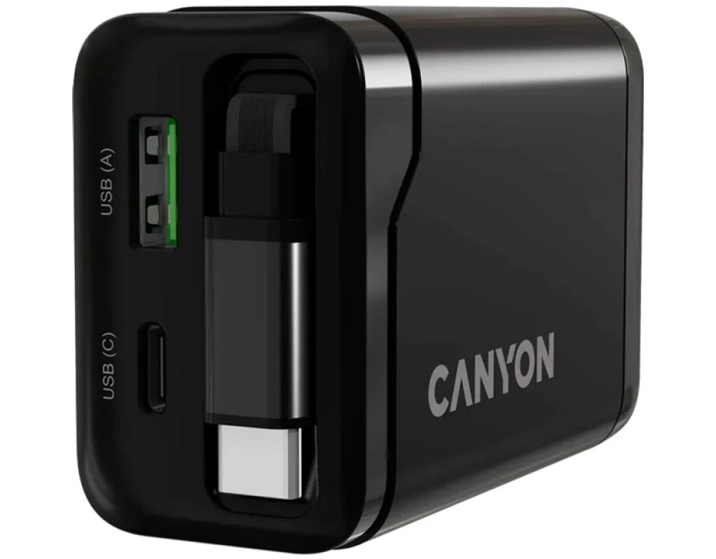 | Зарядний пристрій Canyon 1xUSB-C PD65W + 1xUSB QC3.0 з кабелем USB-C to USB-C чорного кольору (CNS-CURC65ACB) став ідеальним супутником для сучасних технологічних пристроїв. Працюючи на передовій технології GaN (нітрид галію), цей адаптер забезпечує неймовірну продуктивність та ефективність. З потужністю 65 Вт він здатен заряджати ваші ноутбуки, планшети, смартфони і навіть смарт-годинники, геймпади та фітнес-браслети швидше, зберігаючи низьке тепловиділення і компактні розміри. Завдяки двом USB портам - USB-C PD65W та USB QC3.0, ви отримуєте можливість одночасно заряджати кілька пристроїв, не турбуючись про швидкість заряджання. Максимальний вихідний струм в 2.5 А, 1.5 А та 3 А гарантує надійність навіть при найвищих навантаженнях. Додатковий кабель USB-C to USB-C довжиною 68 см забезпечує гнучкість у використанні. Виготовлений з вогнестійкого матеріалу для ПК, Canyon готовий до будь-яких викликів, будь то робочий день або подорож. Універсальний вхід 100–240 В робить його ідеальним для поїздок по всій Європі. Компактні розміри та штекер ЄС додають практичності, дозволяючи легко вмістити зарядний пристрій у вашій сумці або рюкзаку. Інтелектуальний дизайн, висока якість та унікальні функції роблять Canyon CNS-CURC65ACB незамінним елементом для всіх, хто цінує швидкість і надійність в заряджанні своїх пристроїв. |