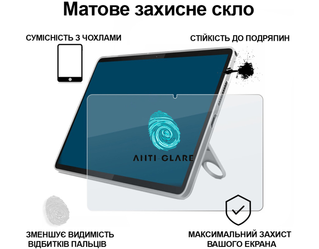 | "Максимальний комфорт і надійний захист з матовим склом від ТМ BeCover Matte Anti-Glare! Відкрийте новий рівень захисту для вашого планшета разом із матовим захисним склом Matte Anti-Glare! Це ідеальне рішення для тих, хто цінує не лише безпеку екрана, а й комфорт користування — без відблисків, віддзеркалень і слідів від пальців. Чому саме Matte Anti-Glare? Матовий ефект — зменшує відблиски та покращує видимість на екрані навіть при яскравому освітленні. Точність дотику — забезпечує плавну роботу сенсора без затримок. Матеріал: загартоване скло з матовим антибліковим покриттям (Anti-Glare) Надійний захист 9H — скло ефективно протистоїть подряпинам, ударам та щоденному зносу. Оберіть BeCover Matte Anti-Glare — і ваш планшет буде не лише добре захищений, а й зручний у використанні в будь-яких умовах. Захист, комфорт, стиль — усе в одному аксесуарі. Ваш планшет заслуговує на найкраще — оберіть BeCover." |