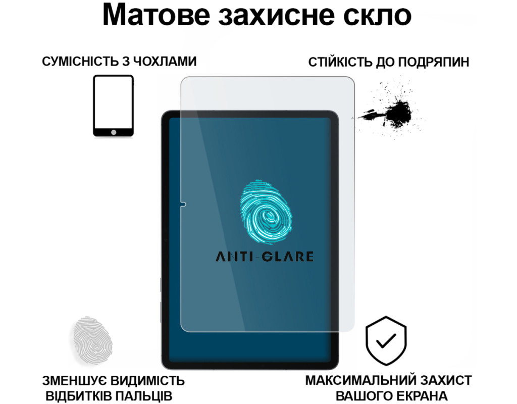 | Максимальний комфорт і надійний захист з матовим склом від ТМ BeCover Matte Anti-Glare! Відкрийте новий рівень захисту для вашого планшета разом із матовим захисним склом Matte Anti-Glare! Це ідеальне рішення для тих, хто цінує не лише безпеку екрана, а й комфорт користування — без відблисків, віддзеркалень і слідів від пальців. Чому саме Matte Anti-Glare?