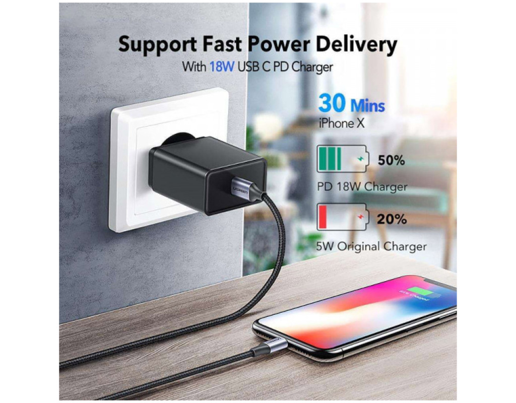 Дата кабель USB-C to Lightning 1.0m 3A 60W US304 black UGREEN (60759)