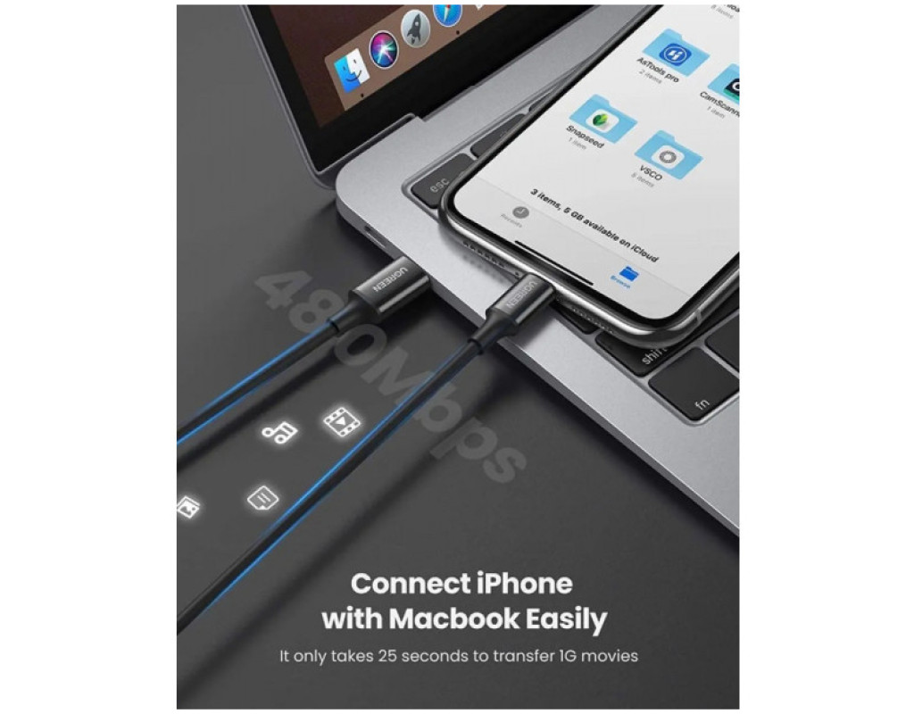 Цей кабель забезпечує стандартний рівень швидкої зарядки та стабільний обмін даними між вашим Apple‑пристроєм і джерелом живлення або комп’ютером, а також зручну довжину для повсякденного використання. |