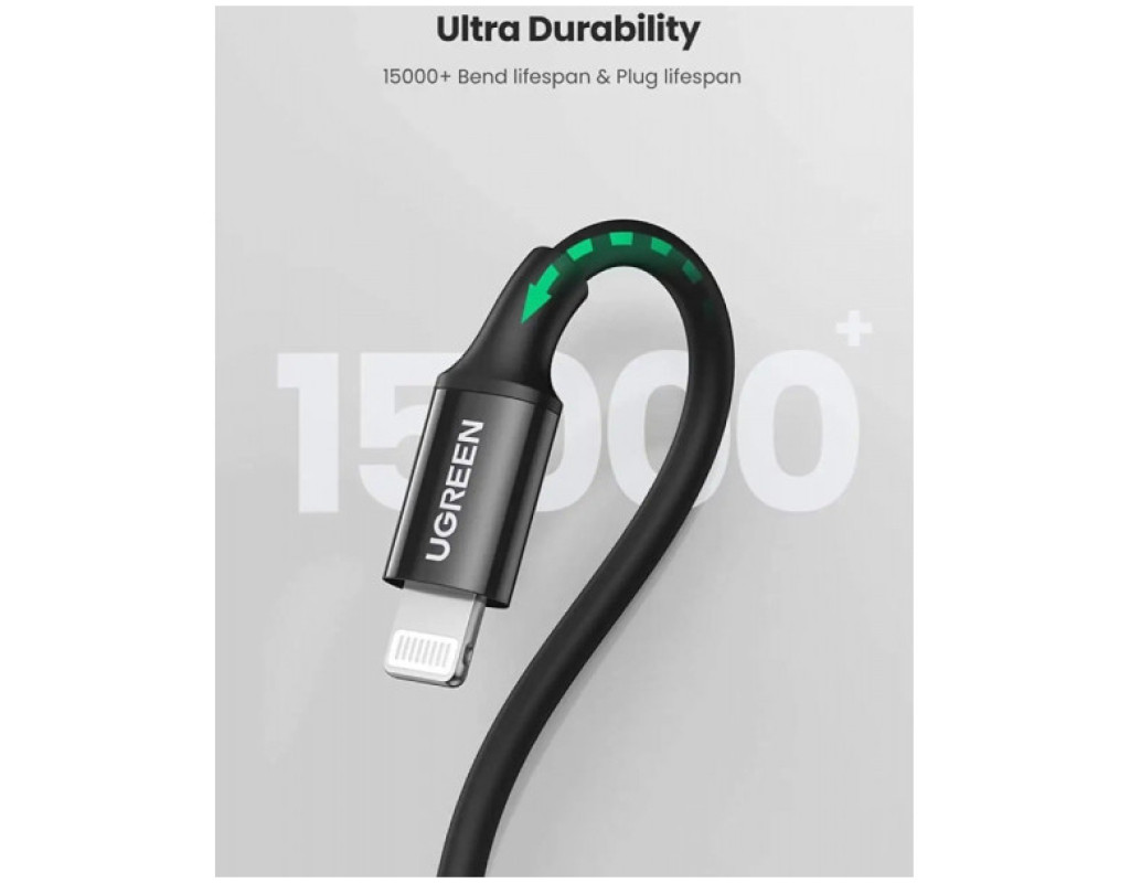 Дата кабель USB-C to Lightning 2.0m 3A US171 black Ugreen (60752) Це універсальний кабель для зарядки та передачі даних від бренду UGREEN, призначений для підключення пристроїв Apple з роз’ємом Lightning (iPhone, iPad, AirPods тощо) до джерела живлення або комп’ютера з USB‑C‑портом. Основні характеристики: