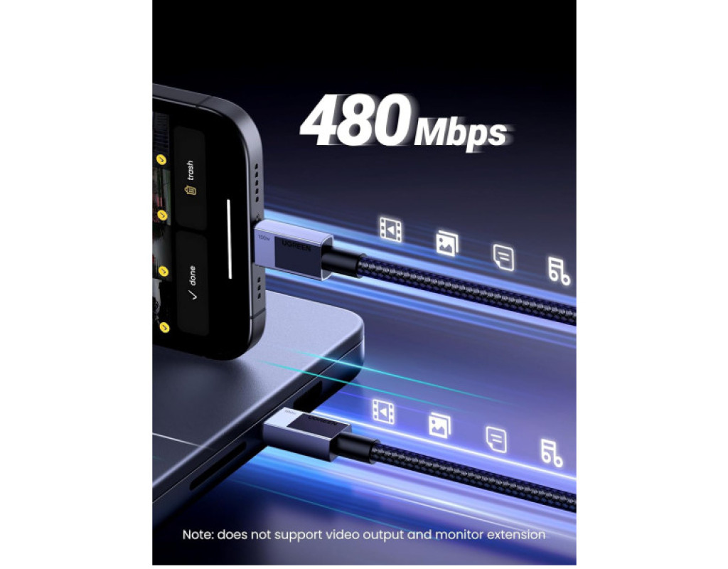 UGREEN USB‑C to USB‑C L512 Cable 100W 3 m — це довгий кабель USB‑C → USB‑C (3 м) від Ugreen, модель L512 (код 45065), призначений для заряджання та передачі даних. Основні характеристики
