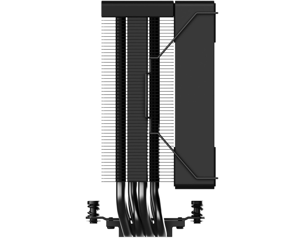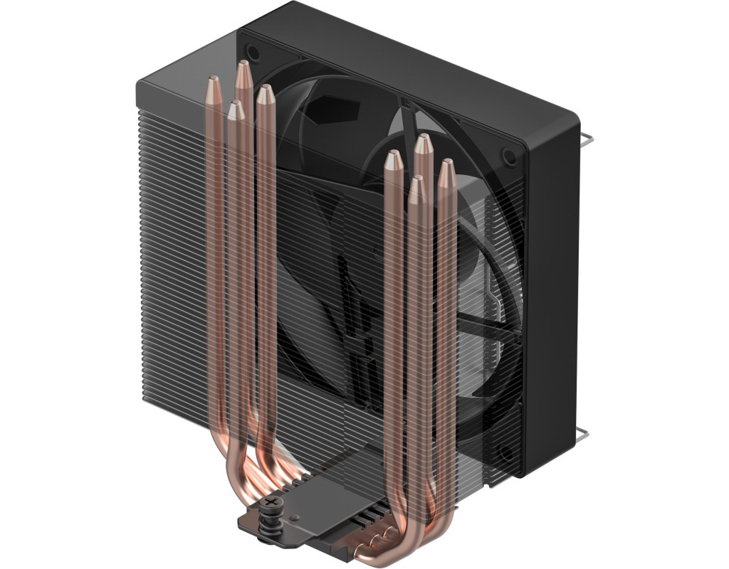 Кінці теплових труб приховані верхньою кришкою, а ребра з натурального алюмінію в поєднанні з нею дозволяють бездоганно вписатися в будь-яку конфігурацію ПК та забезпечують елегантний вигляд. SE-214-XT V2 Black оснащений чотирма 6-міліметровими тепловими трубами з технологією прямого контакту. Ця інновація є ключовою для виняткової продуктивності охолодження, оскільки вони транспортують тепло безпосередньо до оптимальних місць на ребрах охолодження. Кулер оснащений вентилятором AS-120-K V2, який працює з максимальним рівнем шуму 27.2 дБ(A). На корпусі вентилятора є позначки, що вказують напрямок обертання лопатей та напрямок потоку повітря. |