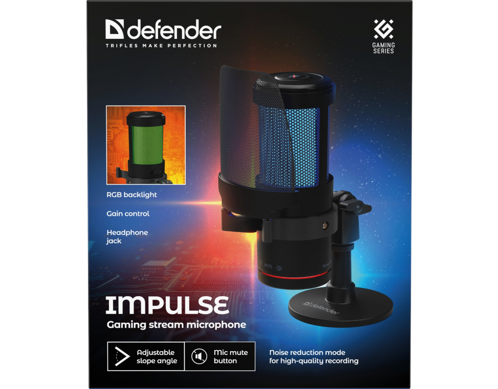 Ігровий стрім мікрофон Defender Impulse GMC 400 USB, RGB, 2.0 м