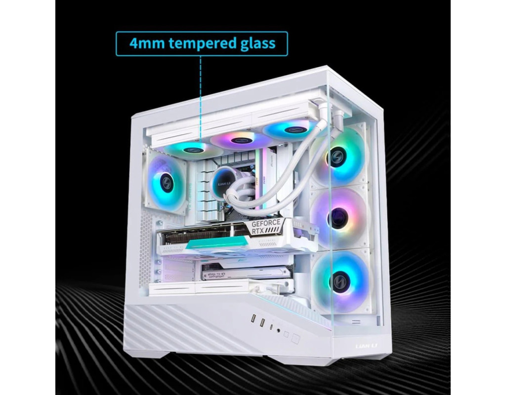 | Lian Li Vector V100 ARGB — це елегантний корпус Midi-Tower, створений для геймерів і користувачів ПК, які прагнуть поєднати стиль і функціональність. Завдяки передній і бічній панелям із загартованого скла товщиною 4 мм, він забезпечує панорамний огляд компонентів із кутом 270°, підкреслюючи внутрішню красу збірки.