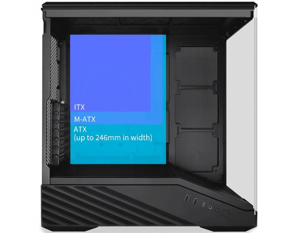 | Lian Li Vector V100 ARGB — це елегантний корпус Midi-Tower, створений для геймерів і користувачів ПК, які прагнуть поєднати стиль і функціональність. Завдяки передній і бічній панелям із загартованого скла товщиною 4 мм, він забезпечує панорамний огляд компонентів із кутом 270°, підкреслюючи внутрішню красу збірки.
