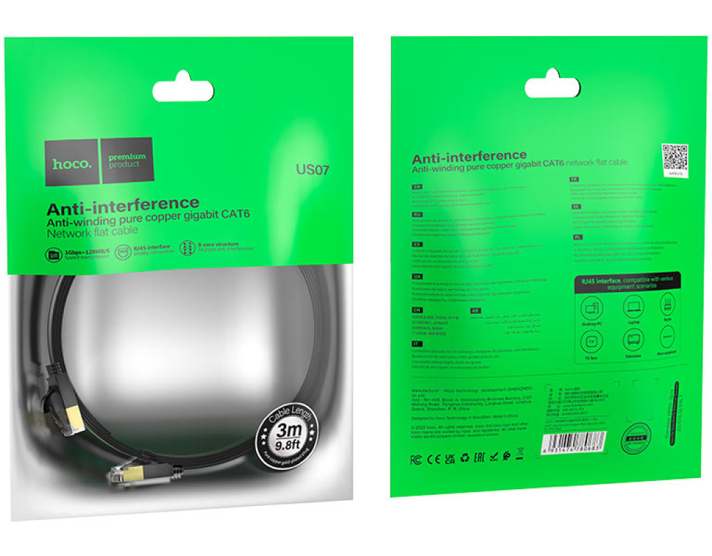 Патч-корд литий HOCO US07, FTP, RJ45, Cat.6, 3,0m, чорний
