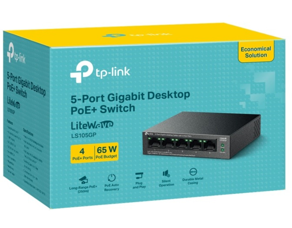 Бюджет PoE 65 Вт: чотири гігабітні порти PoE+, сумісні з 802.3af/at, легко підключають і живлять стаціонарні пристрої, такі як IP-камери, точки доступу та IP-телефони, за допомогою одного кабелю. Кожен порт PoE підтримує вихід PoE потужністю до 30 Вт. Передача PoE до 250 м: у розширеному режимі відстань передачі PoE досягає до 250 м, що ідеально підходить для розгортання камер спостереження на великих територіях. Автоматичне відновлення PoE: автоматично перезавантажує ваші пристрої, що випали або не відповідають. Plug and Play: Просто підключіть і працюйте для миттєвого підключення без необхідності налаштування. Безшумна робота: Конструкція без вентилятора зменшує споживання енергії та забезпечує безшумну роботу, ідеально підходить для чутливих до шуму будинків або підприємств. Надійна конструкція обладнання: Міцний металевий корпус і конструкція для настільного/настінного кріплення добре підходять для різних середовищ. |