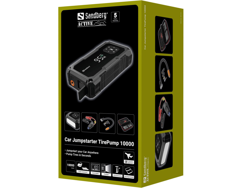 УМБ Sandberg Car Jumpstarter TirePump 10000 USB-A, USB-C, дисплей, ліхтар 2W