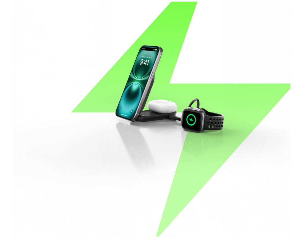 | Заряджайте два пристрої одночасно швидко та безпечно завдяки сертифікованій технології Qi2 25 Вт. Усього за 29 хв iPhone заряджається від 0 до 50 %, а AirPods отримують бездротове живлення до 5 Вт. Додатково вбудований USB-C порт 5 Вт дає змогу зарядити смартгодинник. Технологія ChillBoost із пасивним охолодженням знижує нагрівання під час швидкого заряджання, зберігаючи оптимальний стан батареї. А завдяки складаному, легкому та портативному дизайну зарядну станцію зручно брати з собою – вона перетворює будь-яку поверхню на зарядний хаб. |