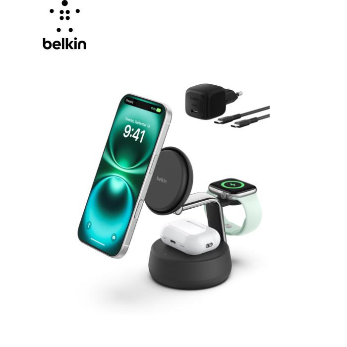 | Зарядний пристрій Belkin UltraCharge Pro Wireless 3-in-1 25W charcoal (WIZ040KQCH) — це втілення передових технологій та зручності для ваших найулюбленіших гаджетів. Створений для швидкого та безпечного заряджання, цей пристрій підтримує інноваційну технологію Qi2, яка забезпечує максимальну вихідну потужність у 25 Вт. Це дозволяє заряджати ваш iPhone до 50% усього за 25 хвилин, а Apple Watch Series 10 — на 80% усього за півгодини. Особливістю цього зарядного пристрою є унікальна система ChillBoost, яка використовує активне охолодження для підтримання оптимальної температури пристроїв під час заряджання, роблячи процес бездротового заряджання так само ефективним, як і дротового. 3-в-1 конструкція док-станції дозволяє одночасно живити iPhone, Apple Watch та AirPods, значно спрощуючи організацію простору. Завдяки цьому, ви позбавляєтесь від зайвих кабелів та підтримуєте порядок на робочому місці або вдома. Цей пристрій не лише задовольняє ваші функціональні потреби, але й робить це стильно — вишуканий відтінок charcoal стане чудовим доповненням до інтер’єру будь-якого простору. |