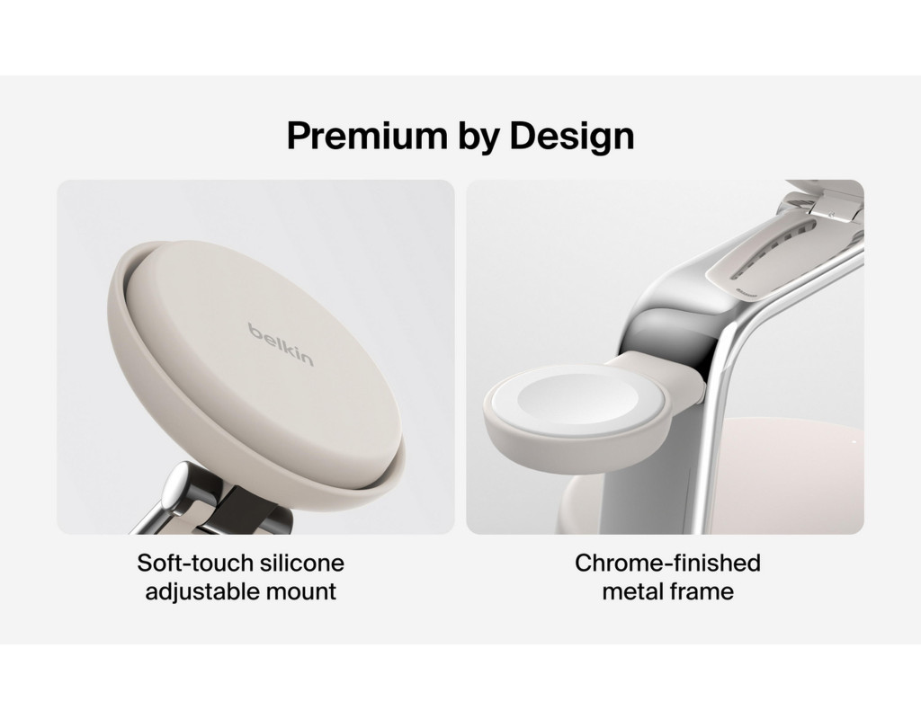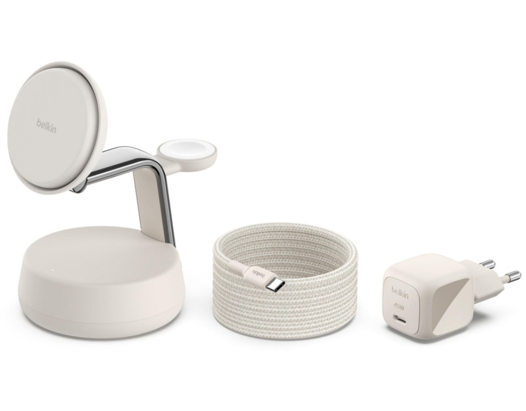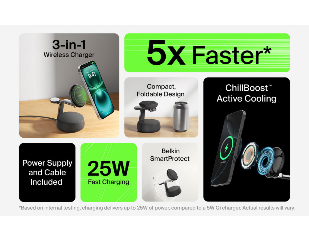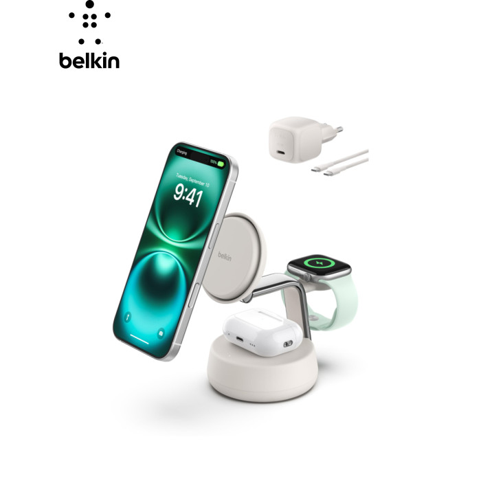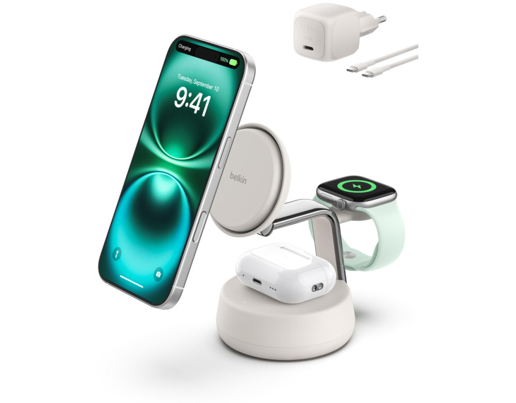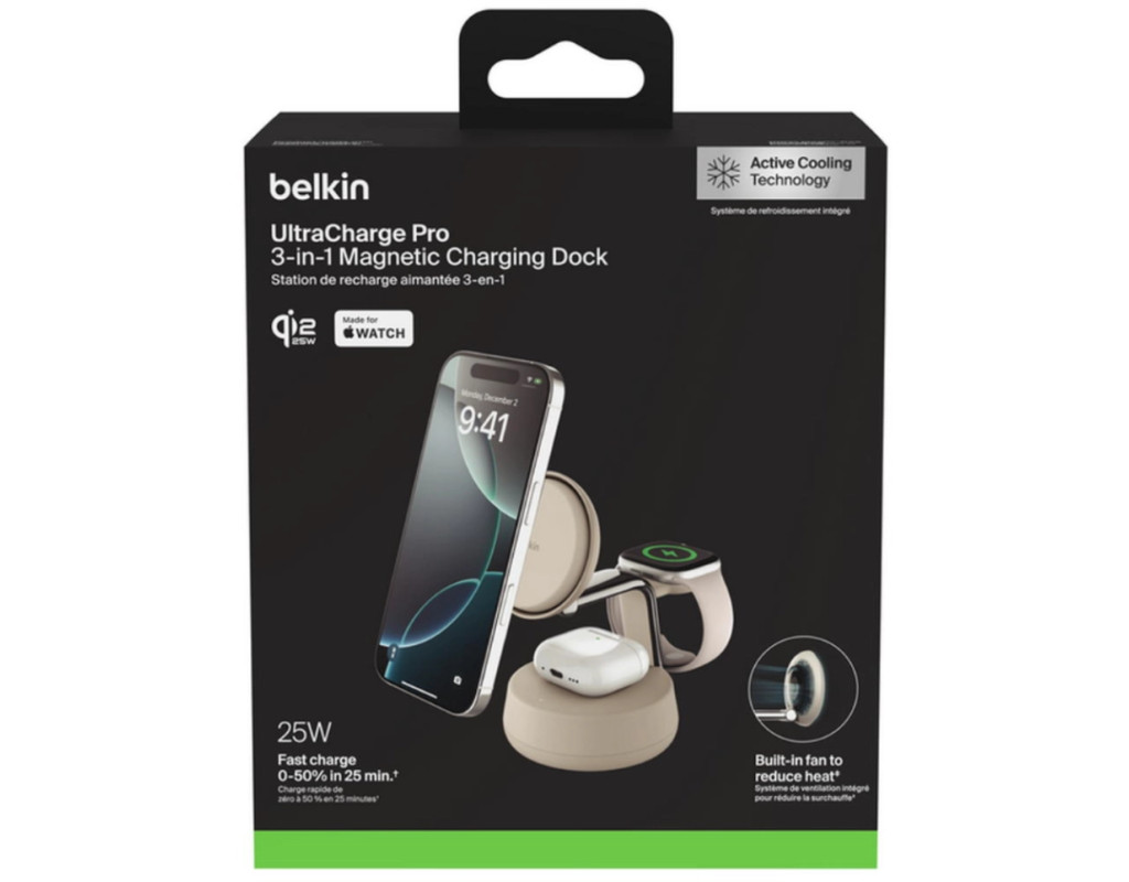 | Зарядний пристрій Belkin UltraCharge Pro Wireless 3-in-1 25W sand (WIZ040KQSD) забезпечує високу якість і ефективність бездротового заряджання завдяки використанню передової технології Qi2. Цей компактний пристрій розроблений для зручно-сучасного життя, адже дозволяє одночасно заряджати ваш iPhone, Apple Watch та AirPods, економлячи місце та зберігаючи порядок на вашому робочому столі. Інноваційна система ChillBoost гарантує підтримку оптимальної температури, завдяки чому бездротове заряджання стає таким же швидким, як і дротове. З максимальною вихідною потужністю у 25 Вт, пристрій заряджає iPhone від 0 до 50% усього за 25 хвилин, а Apple Watch Series 10 на 80% за 30 хвилин. Унікальна конструкція 3-в-1 робить його незамінним для користувачів, які цінують ефективність і стиль. Працюючи від електромережі, він підходить як для заряджання смарт-годинників, так і TWS навушників та смартфонів. Спробуйте Belkin UltraCharge, щоб завжди бути на зв'язку без зайвих зусиль. |