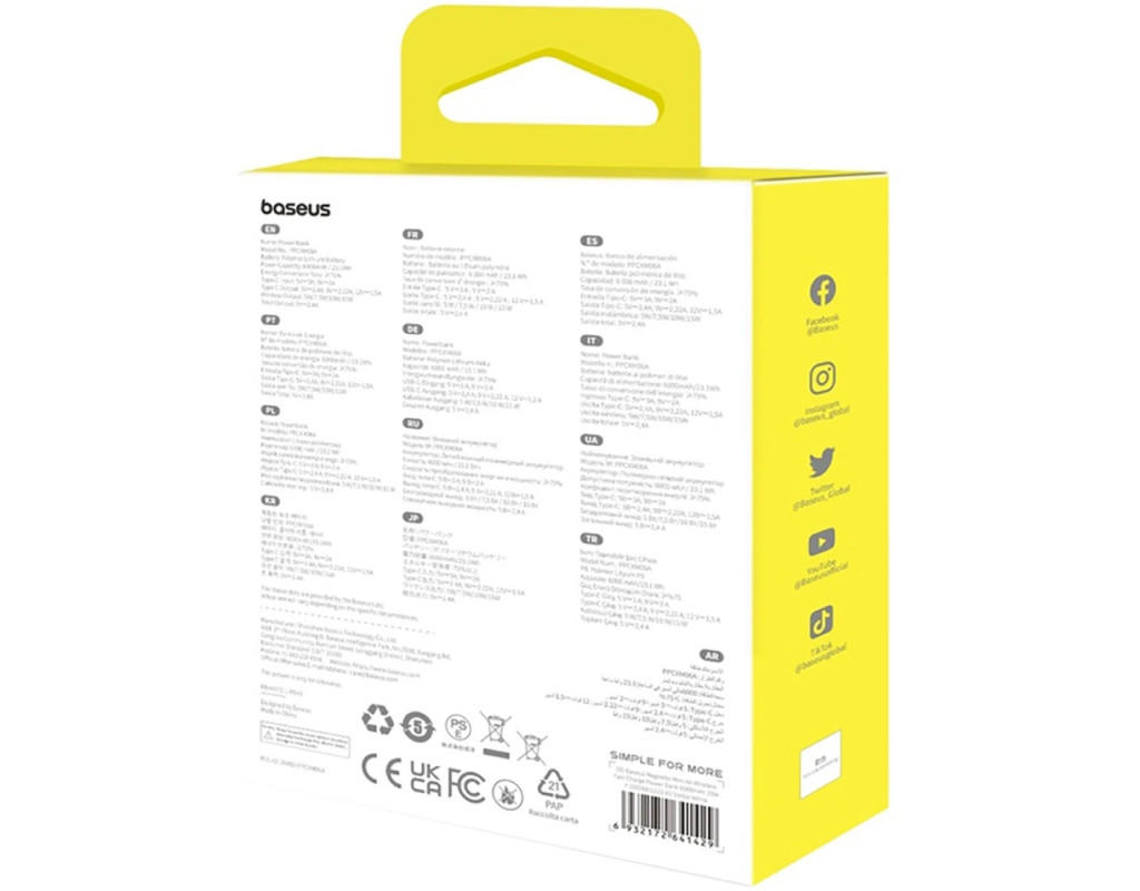 | УМБ Baseus Magnetic Wireless Mini Air 6000mAh 20W PD,QC, USB-C In/Out, Qi-15W White |