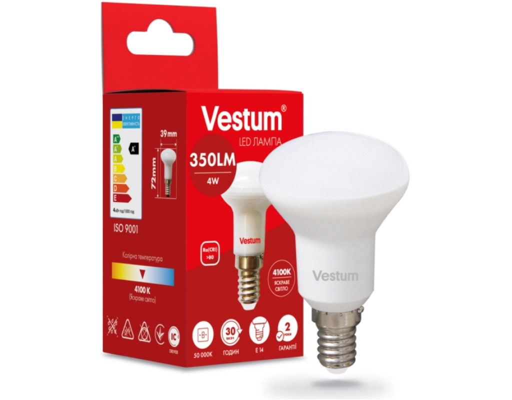 Світлодіодна лампа Vestum 1-VS-1401 потужністю 4 Вт дає 350 Лм. Споживаючи в рази менше електрики, ніж лампи розжарювання або люмінесцентні лампи, вона дає таку ж кількість світла і прослужить в кілька разів довше. Лампа має нейтральне світло, що робить її підходящою для кабінету, кухні, коридору або ванної. Стандартний цоколь E14 підходить для люстр, торшерів, настільних ламп, настінних та точкових світильників.